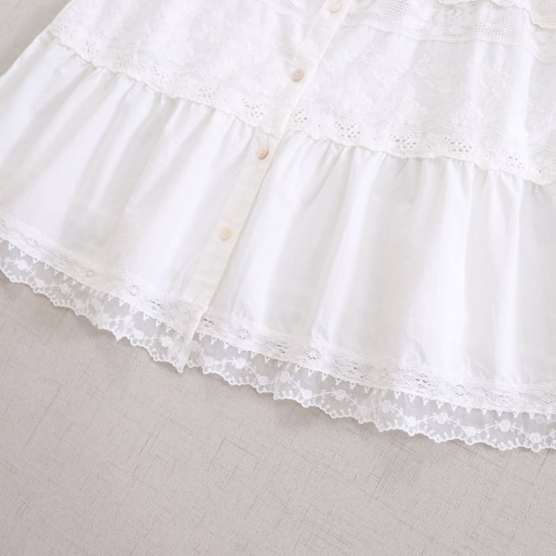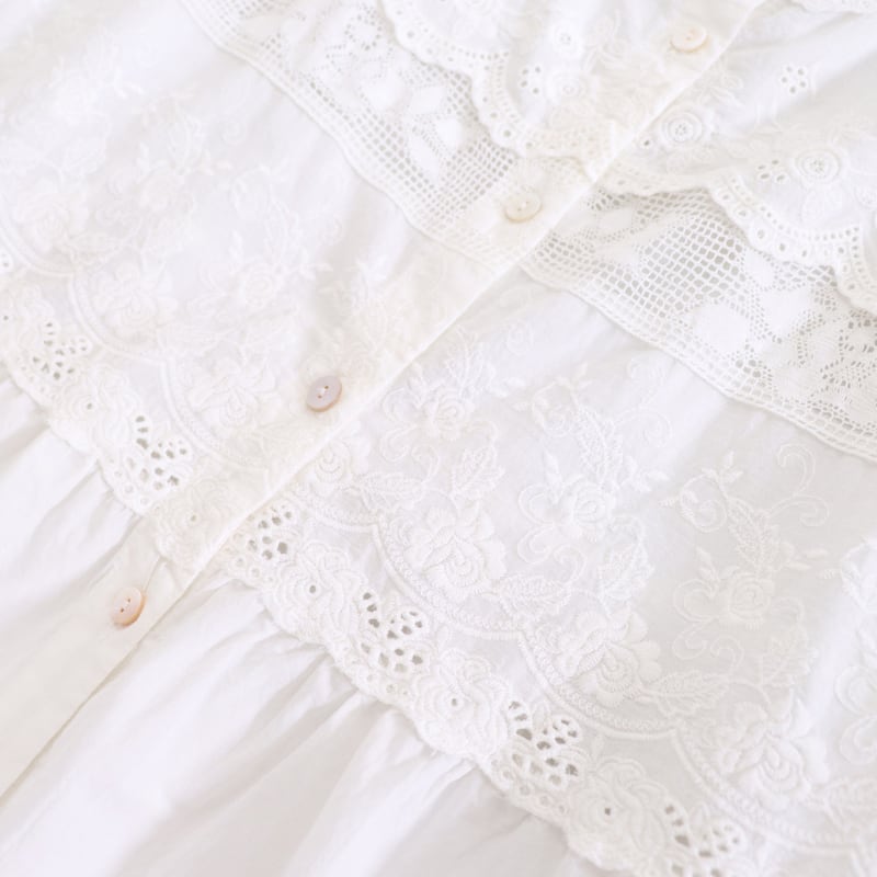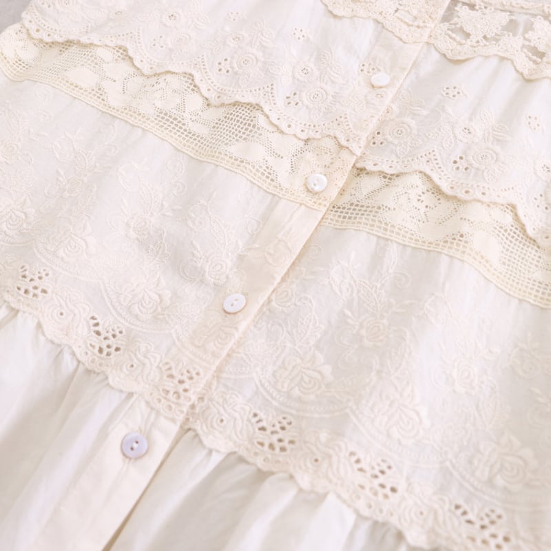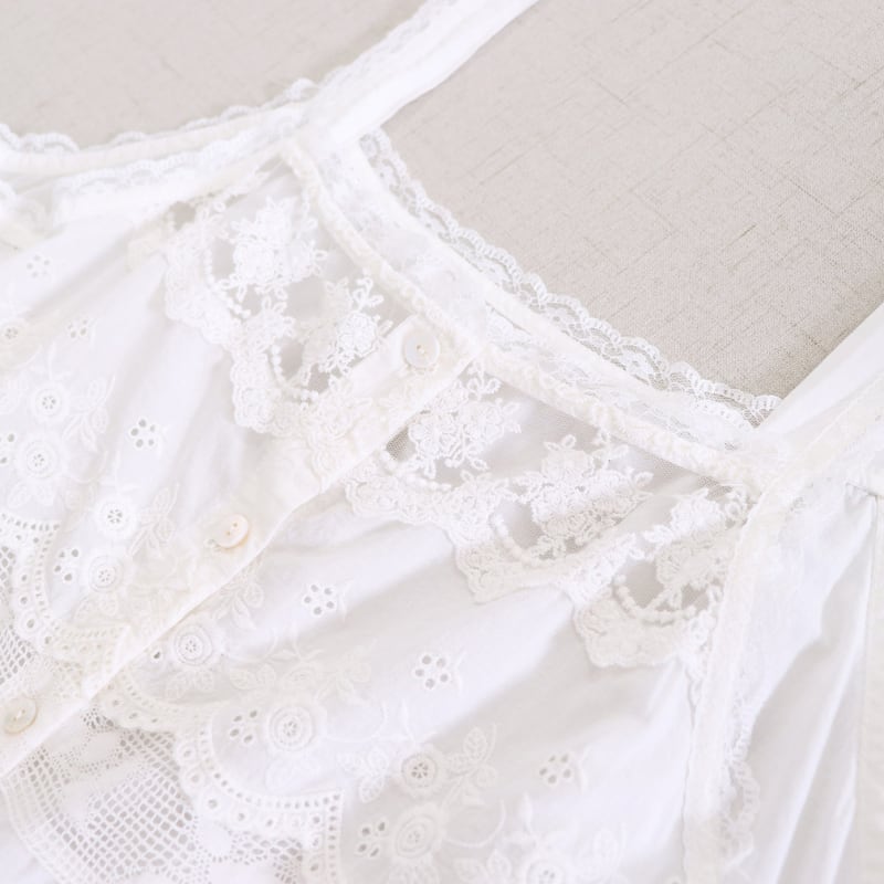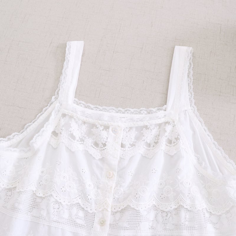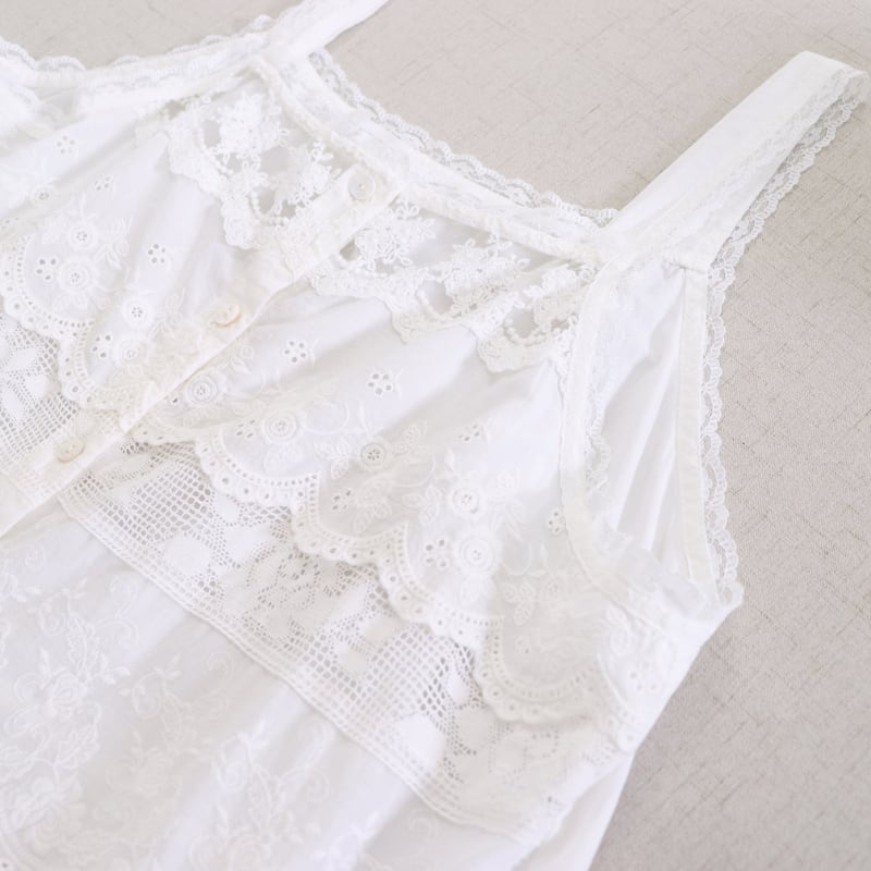 レースと刺繍の切り替えがアクセントになるキャミソールです。
