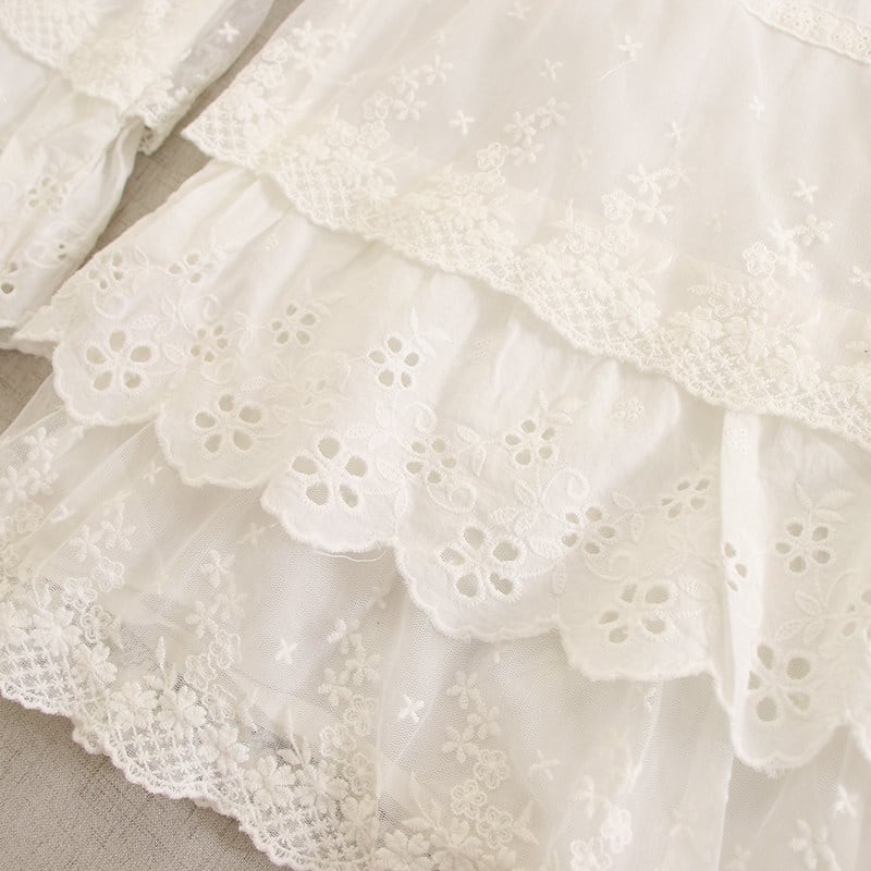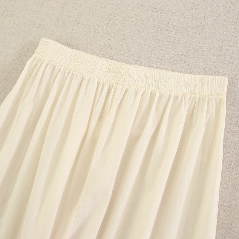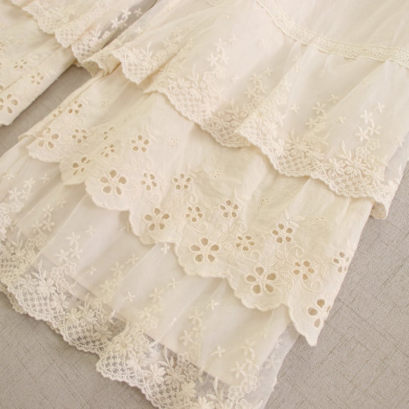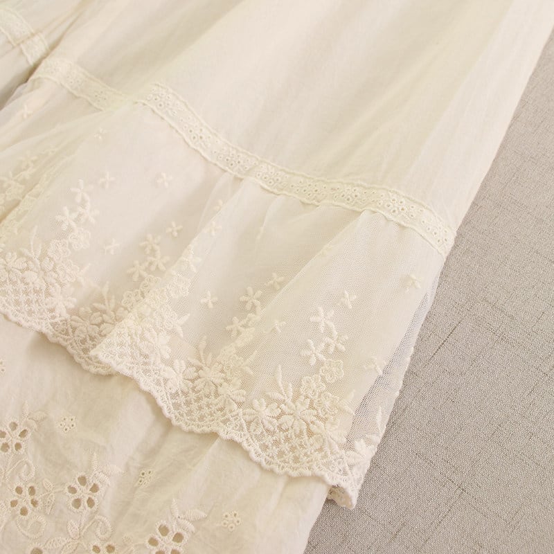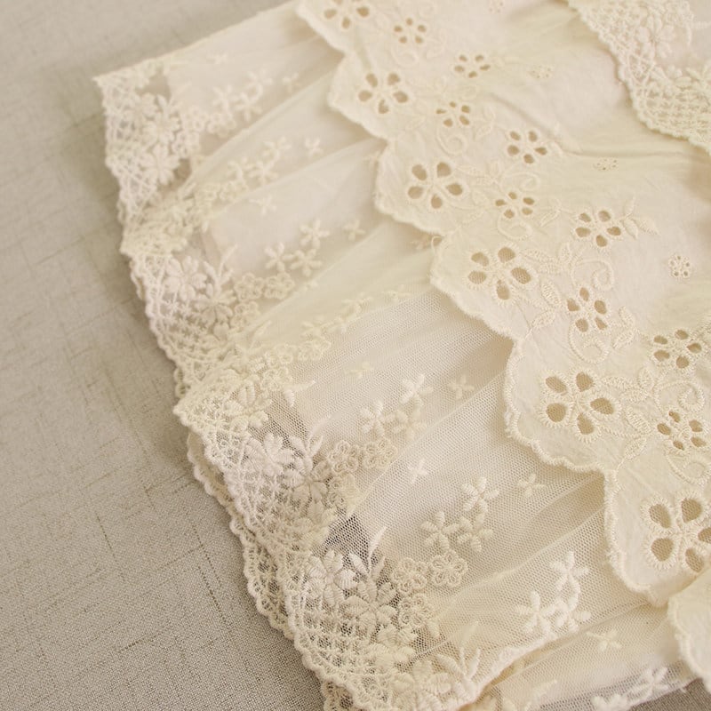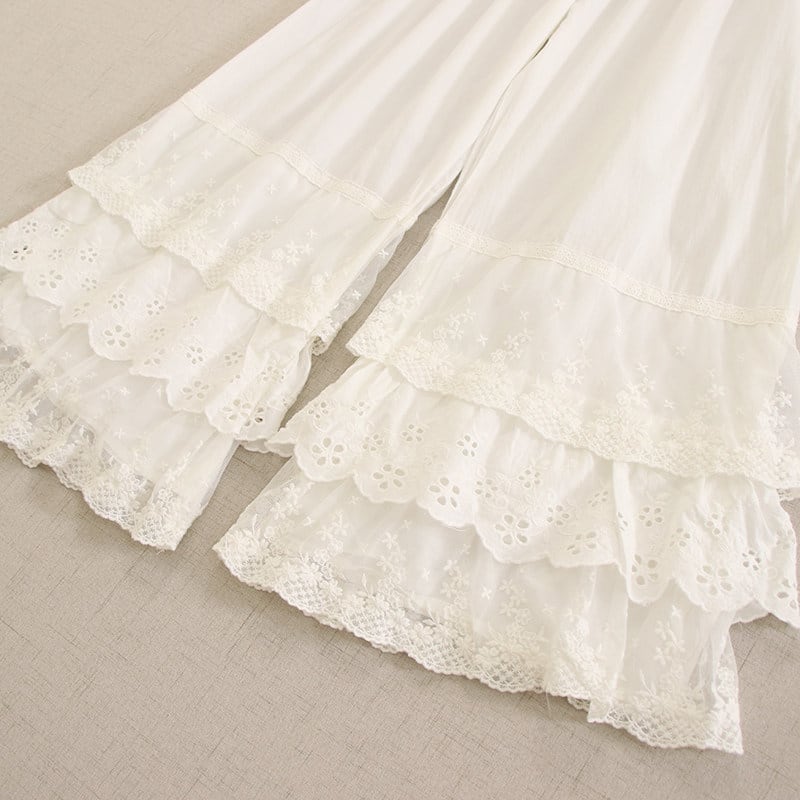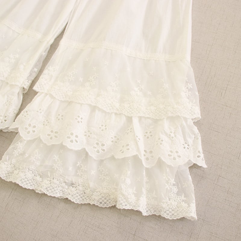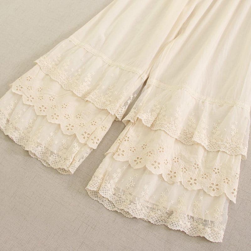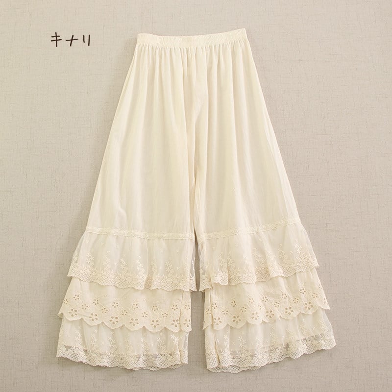 裾に重ねたレースと刺繍がやさしい表情を添えるペチパンツです。