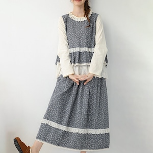 小花柄レース切替ベスト W1727