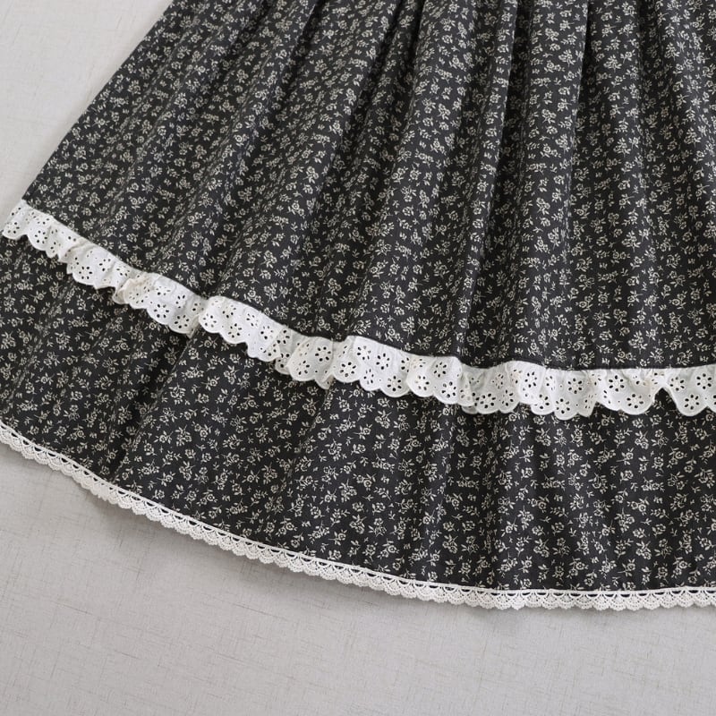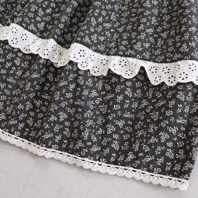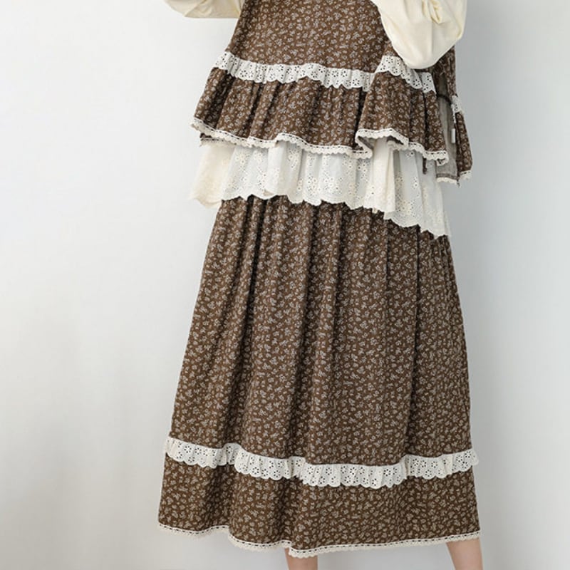 小花柄レース裾ロングスカート W1726