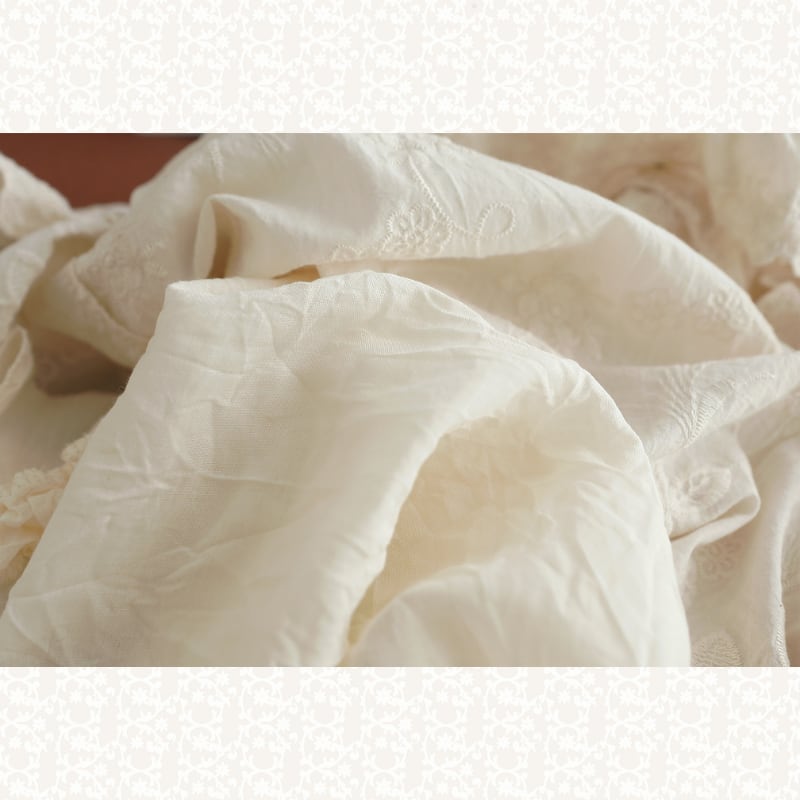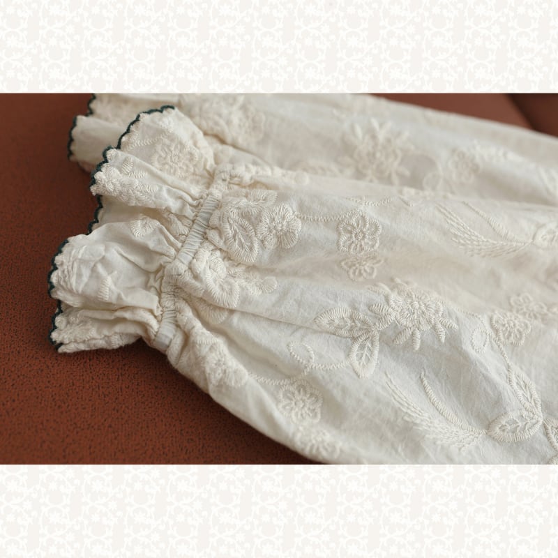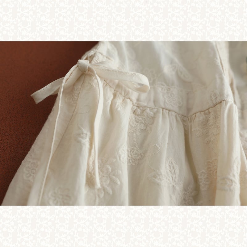 刺繍の立体感とレースの切り替えがアクセントになるロングワンピースです。