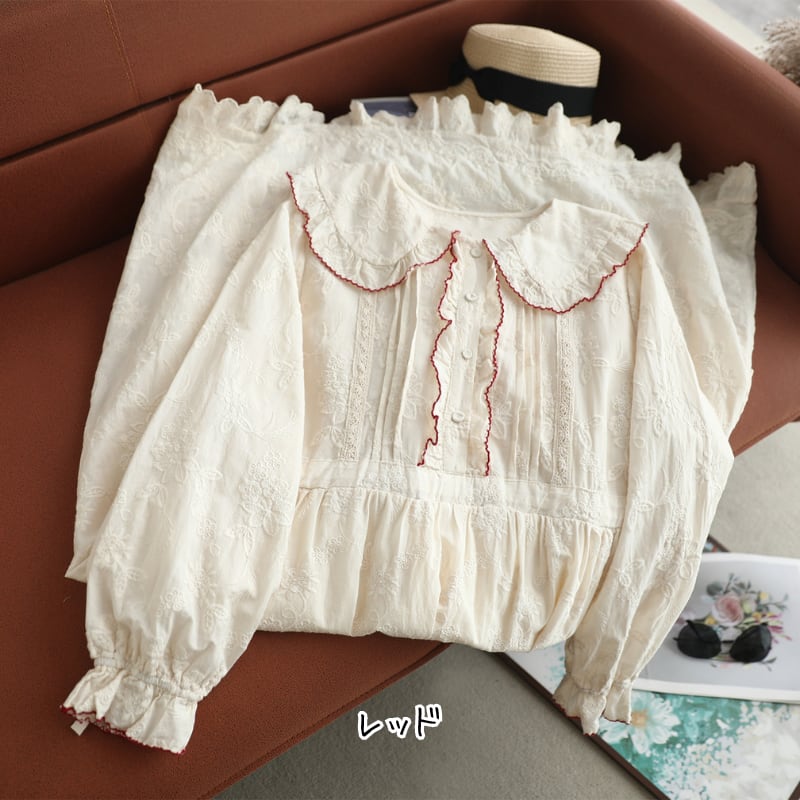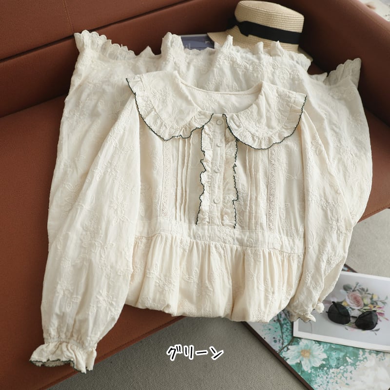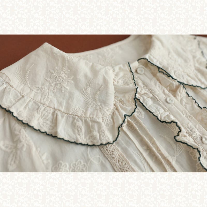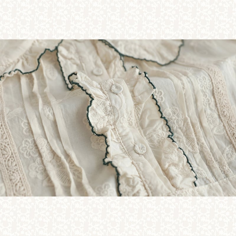 刺繍レースフリル衿ロングワンピース W1738
