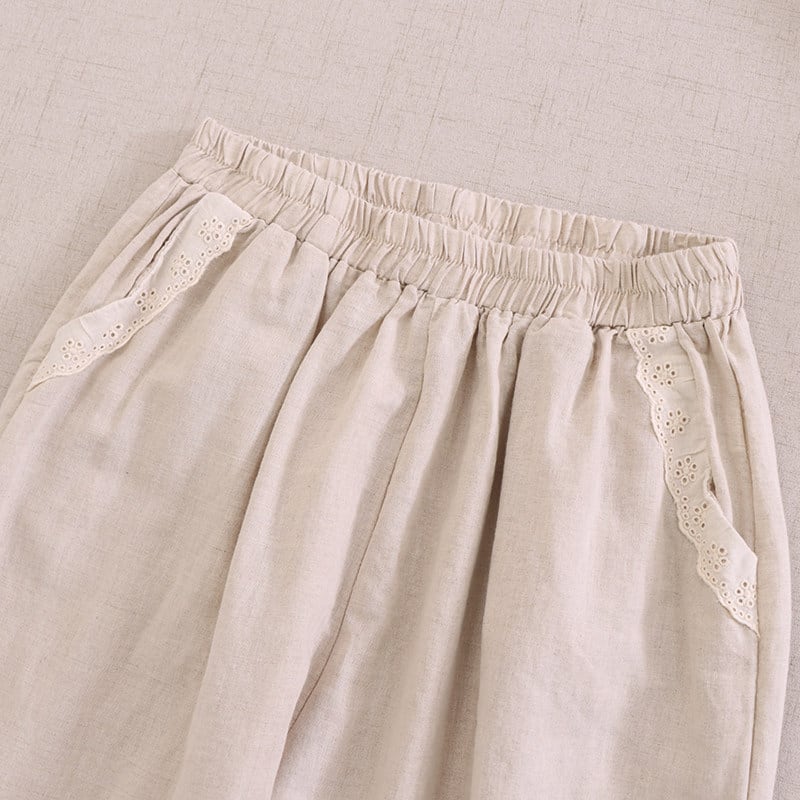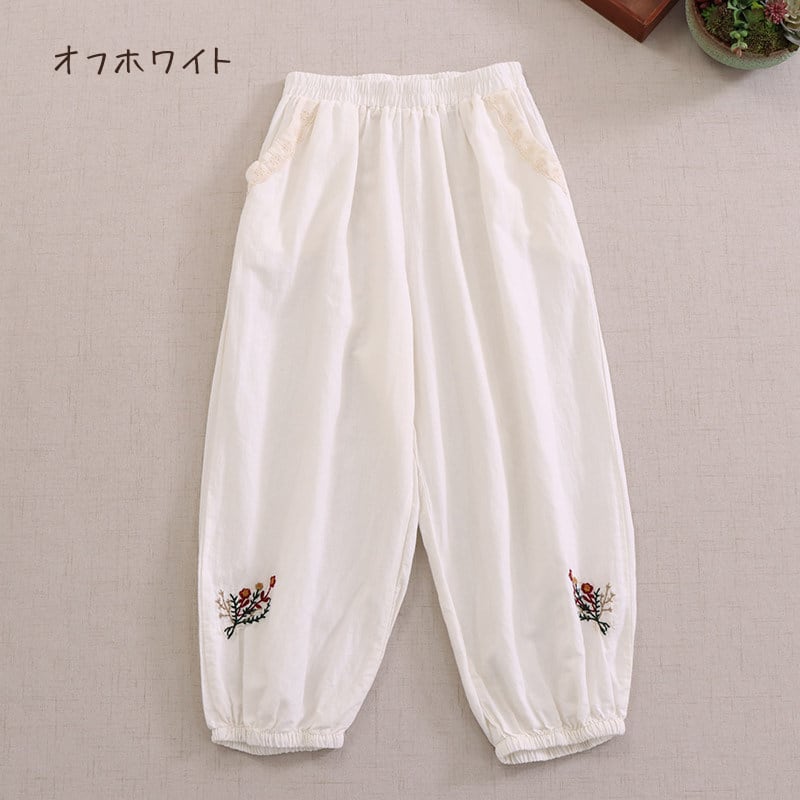 花刺繍レースナチュラルパンツ W1751
