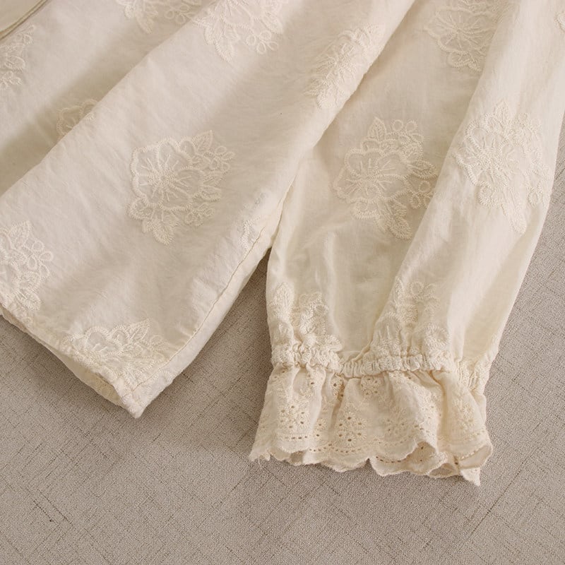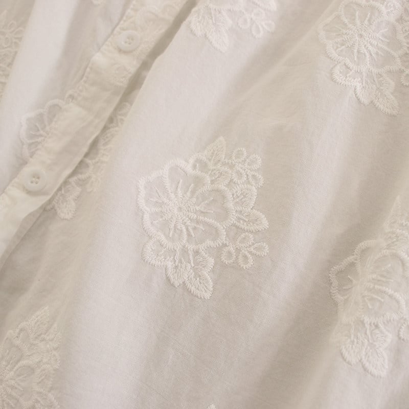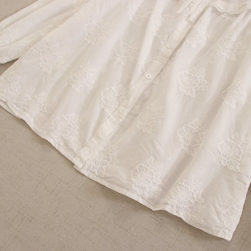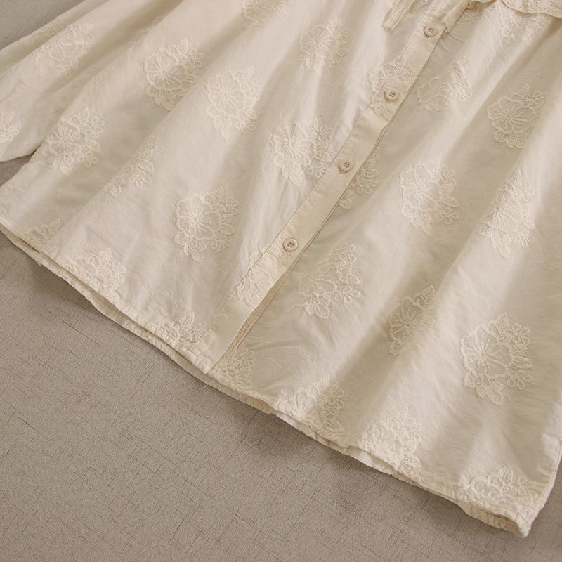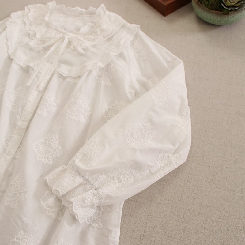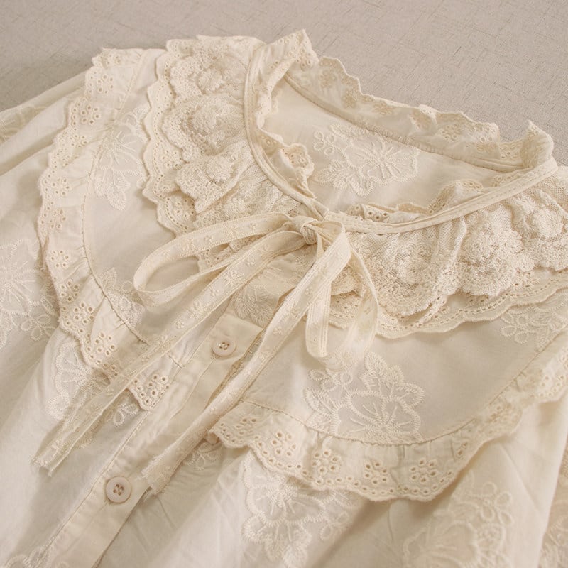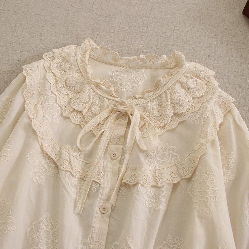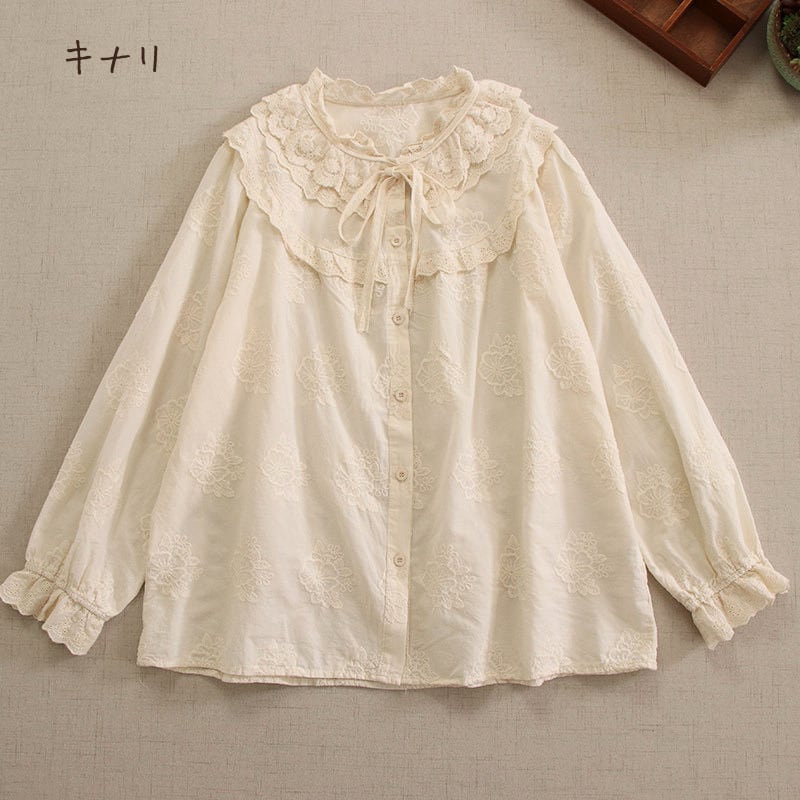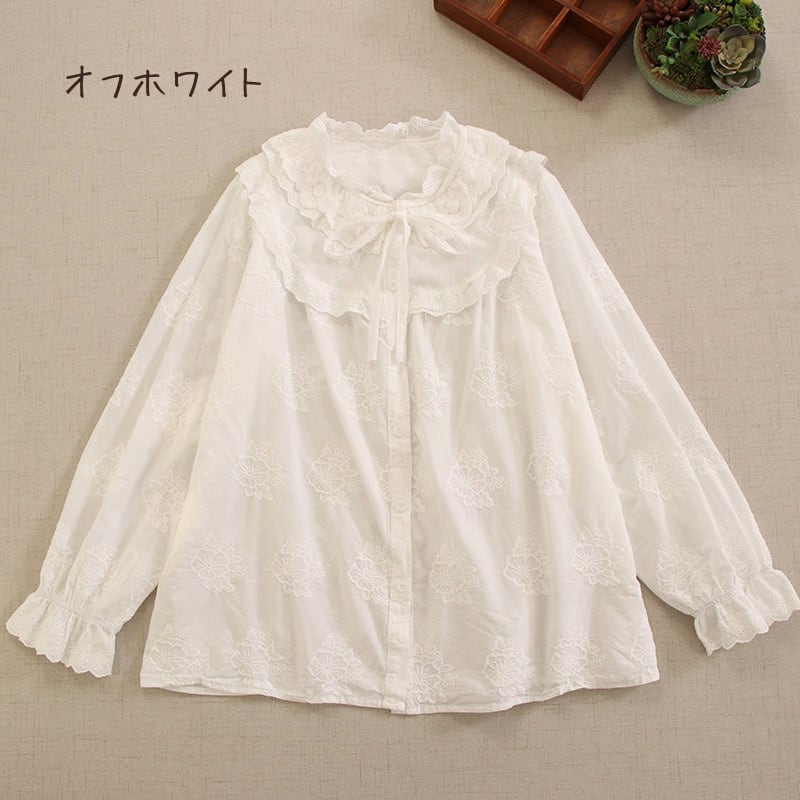 刺繍の甘さとレース襟の可憐さが、コーデ全体をふんわりまとめてくれるブラウスです。