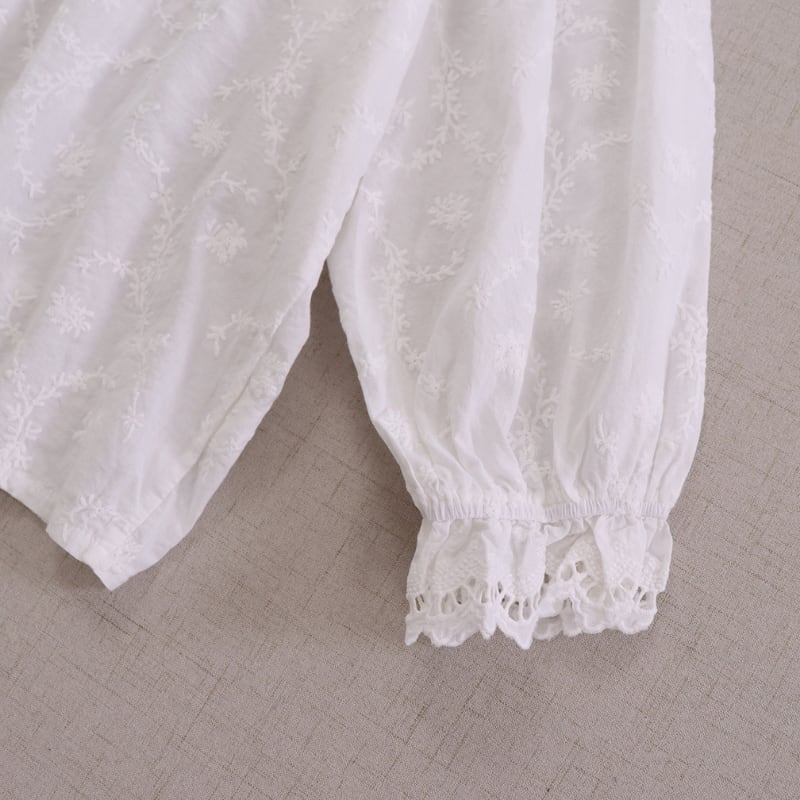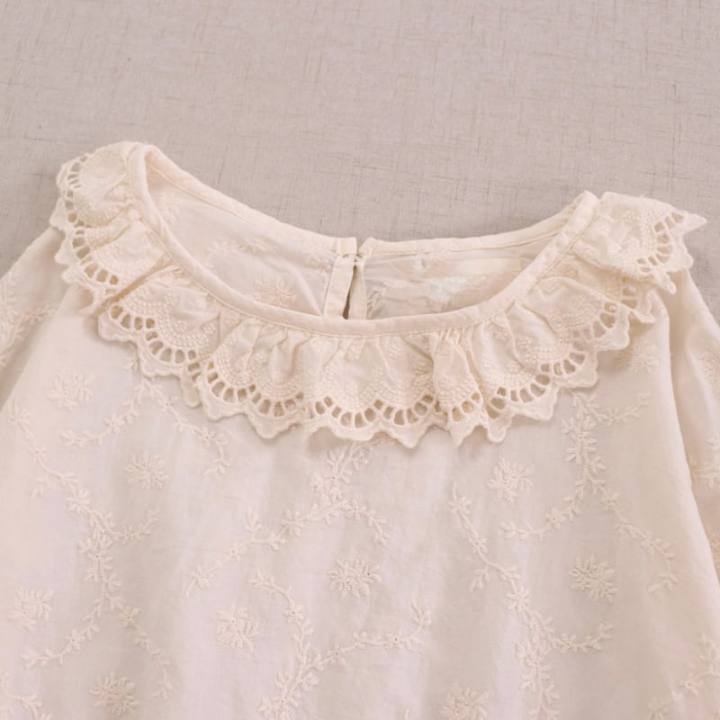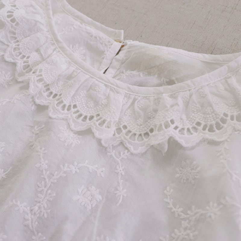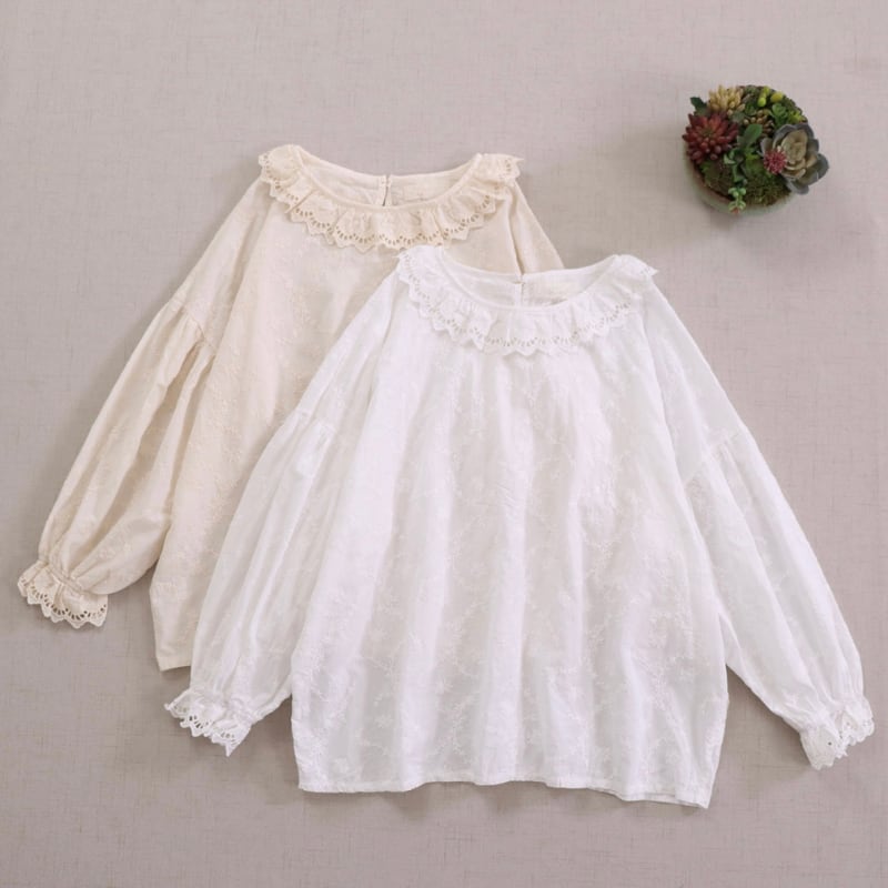 刺繍の甘さとレース襟の可憐さが、コーデ全体をふんわりまとめてくれるブラウスです。