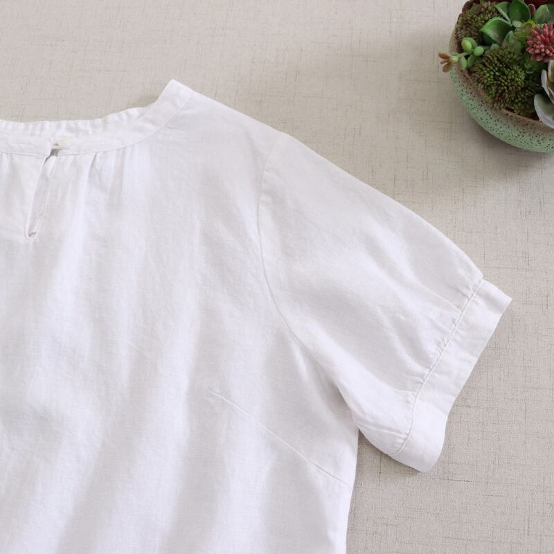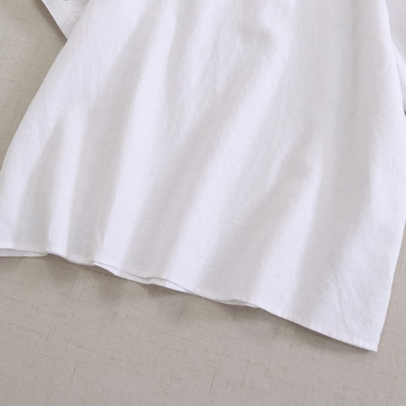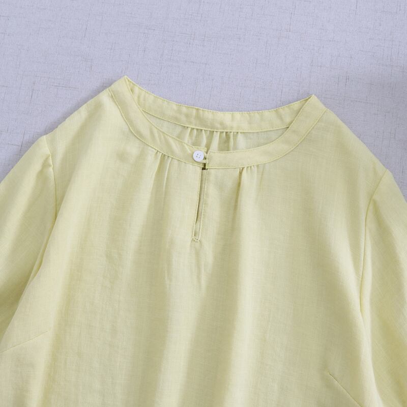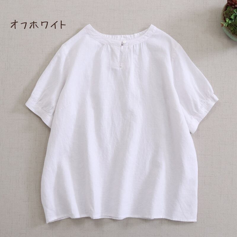 やわらかな素材感が魅力の、前ボタン仕様の半袖ブラウスです。