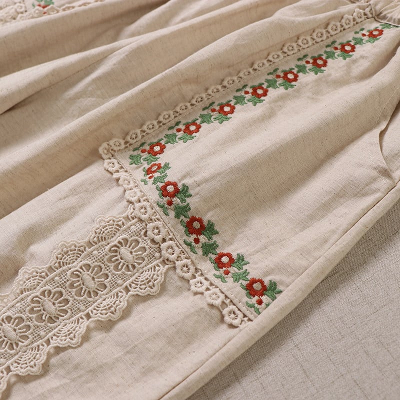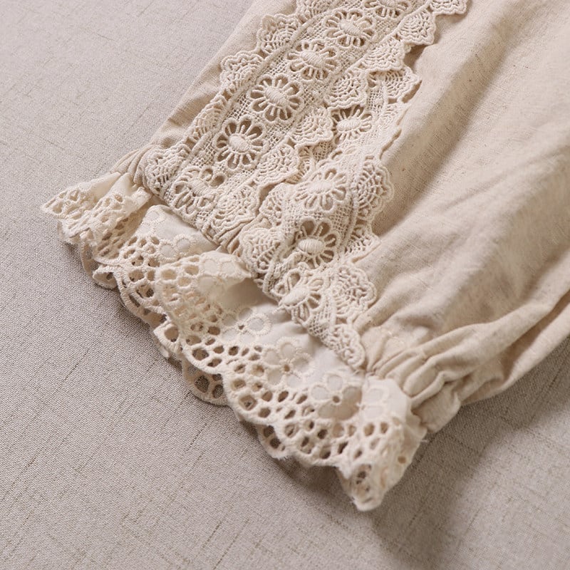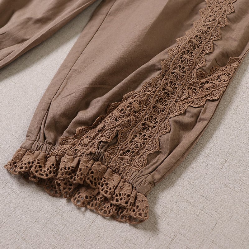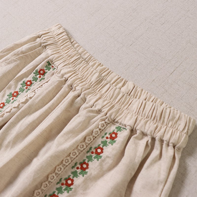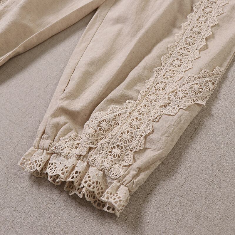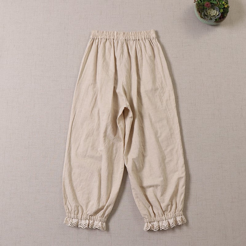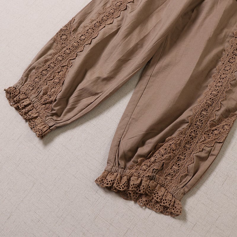 ポケット刺繍とレース切替がポイントの、2色展開のナチュラルパンツです。