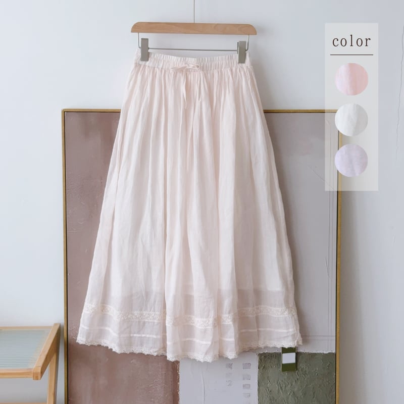 レースの陰影がコーデに奥行きを添え、自然体のまま過ごせる柔らかな空気をつくってくれる一枚です。
