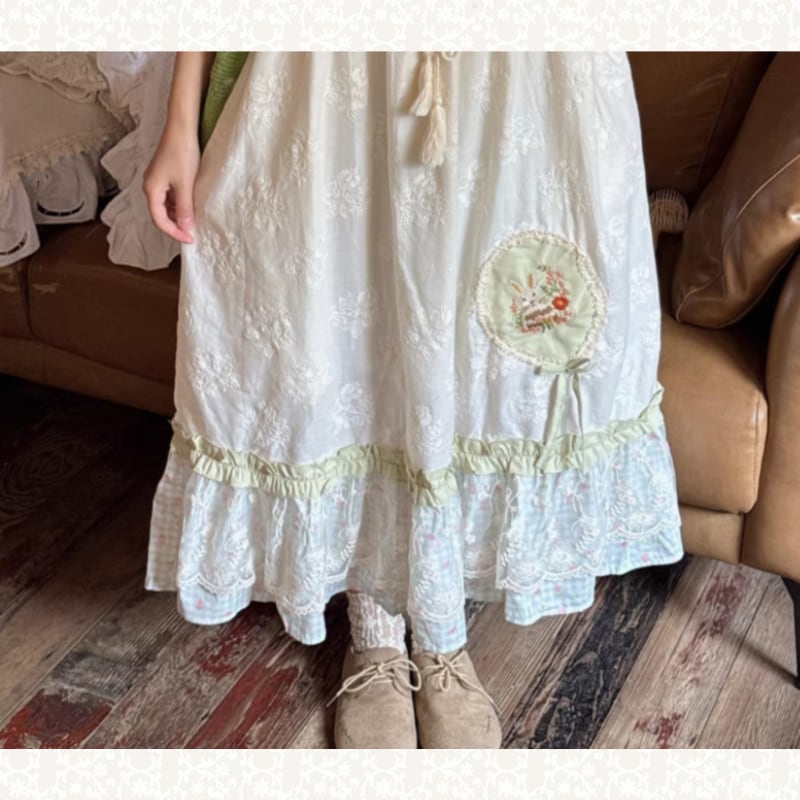 白いレースインナーを重ねれば森の散歩道のような雰囲気が広がり、レース靴下や革のフラットシューズを合わせると素朴な甘さが静かに整います。