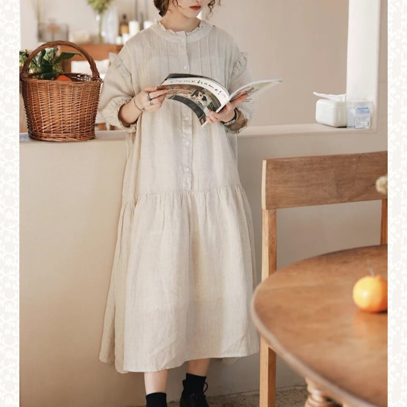 小花柄ワンピースの上に重ねれば森の散歩道のような雰囲気が広がり、白い靴下や革のフラットシューズを合わせると素朴な甘さが静かに整います。