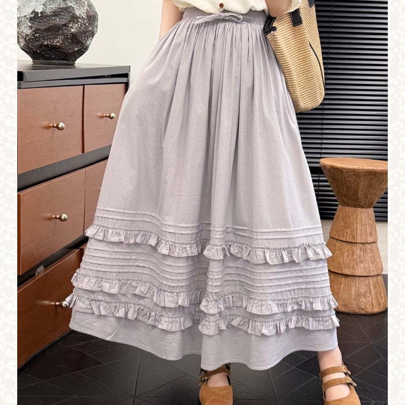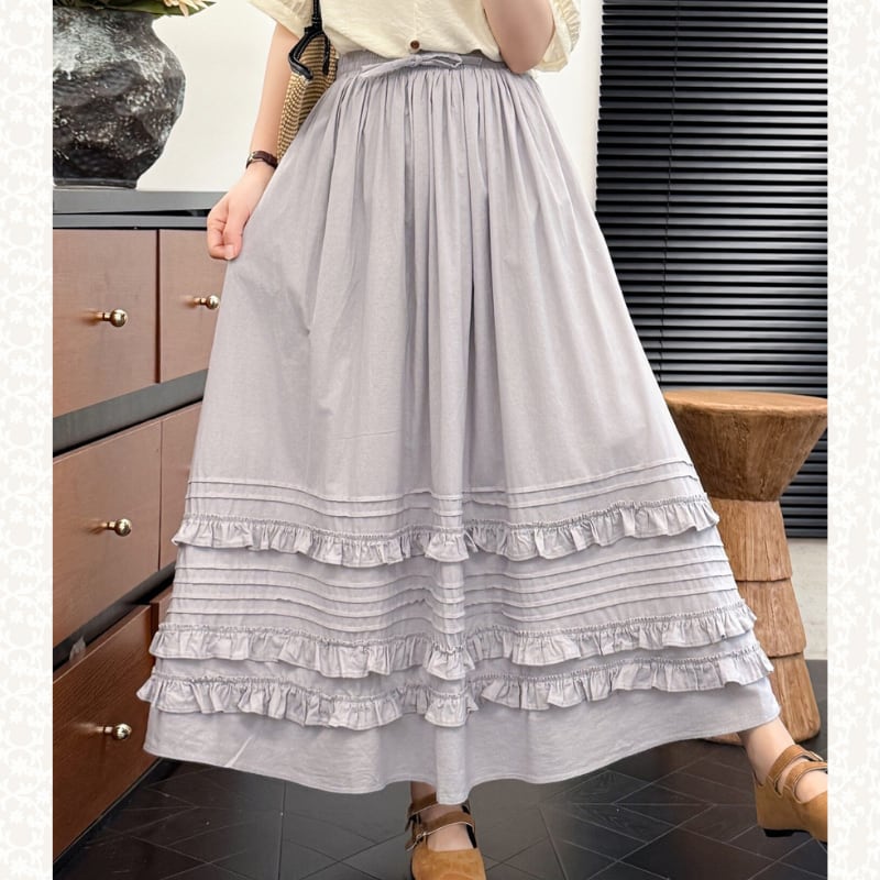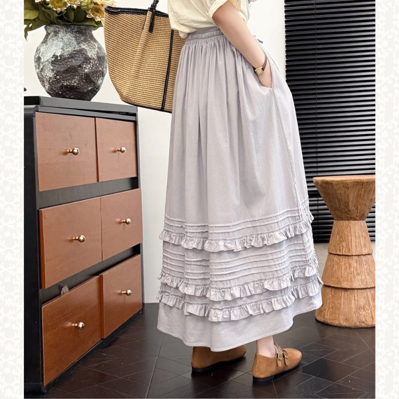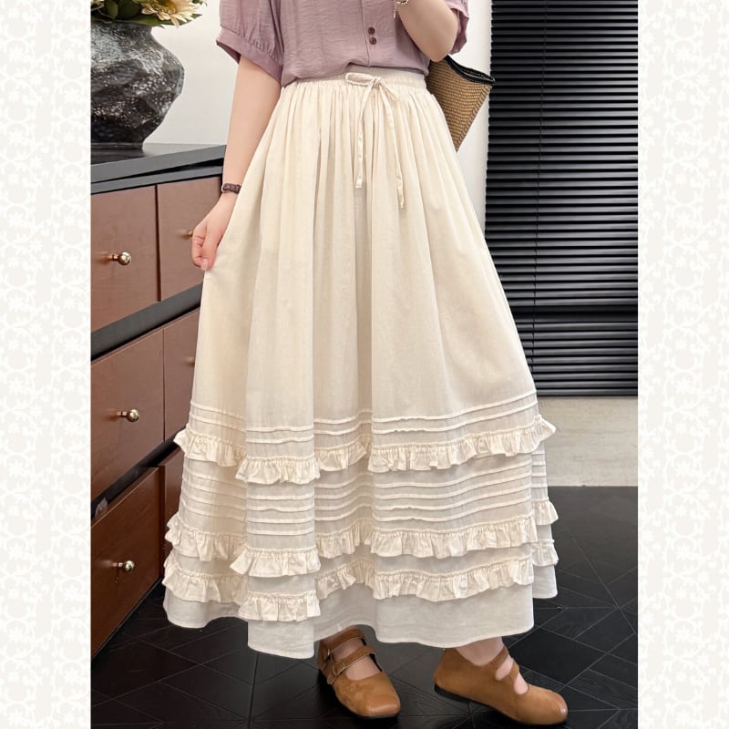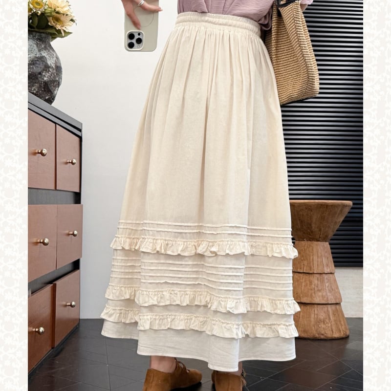 ピンタックとフリルがやさしく映える、表情豊かなナチュラルスカート。