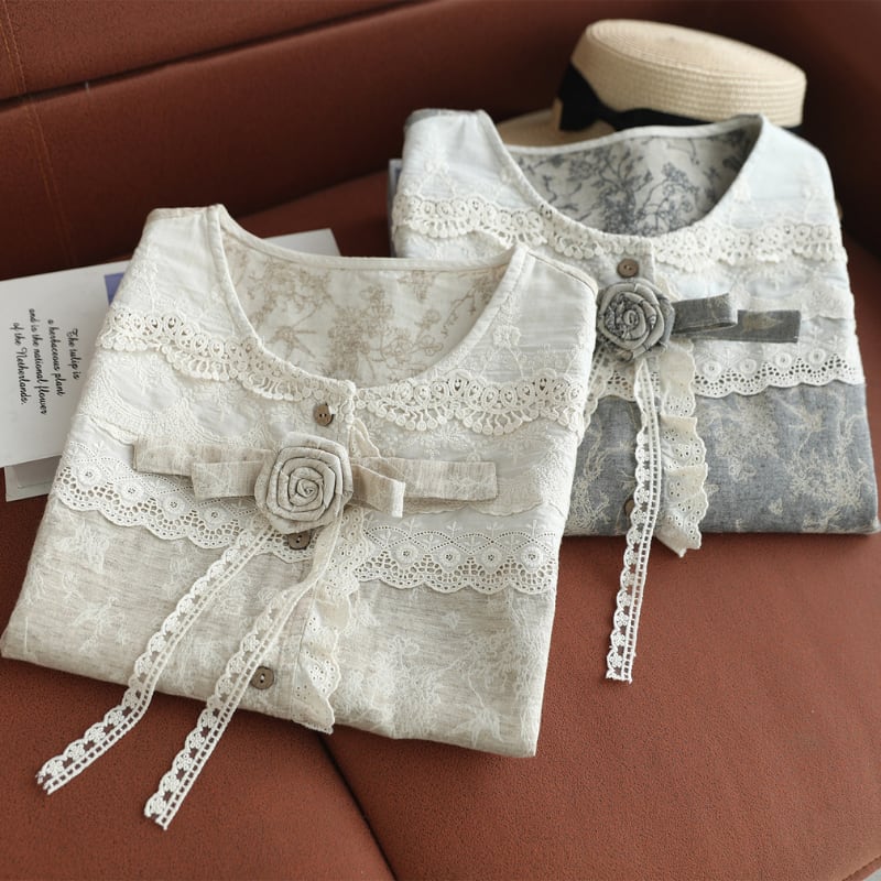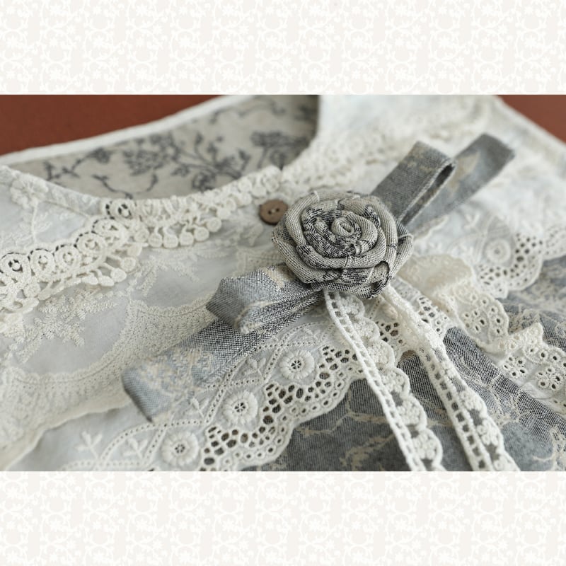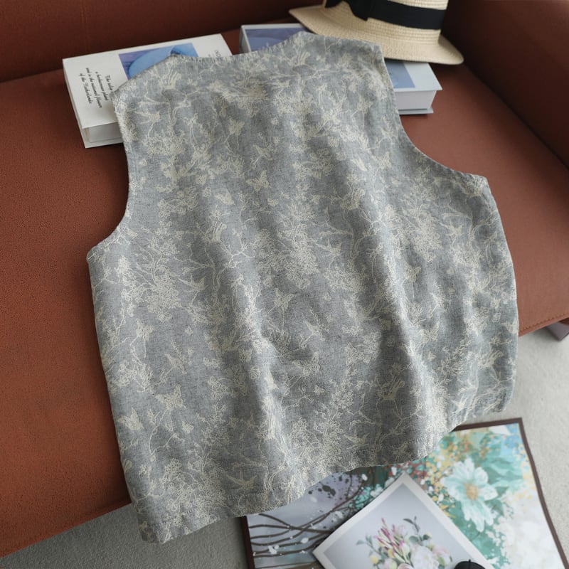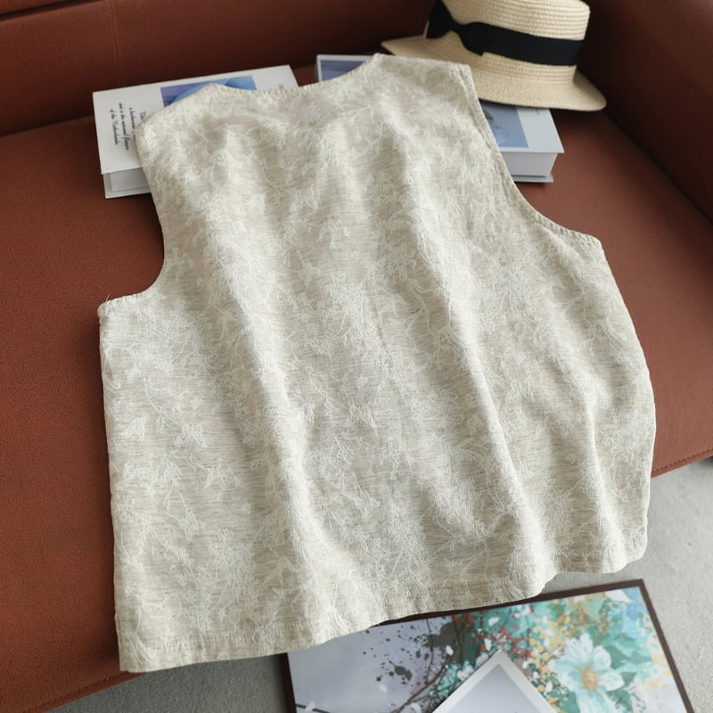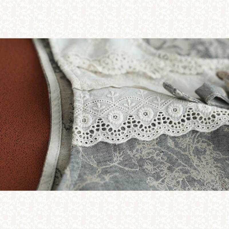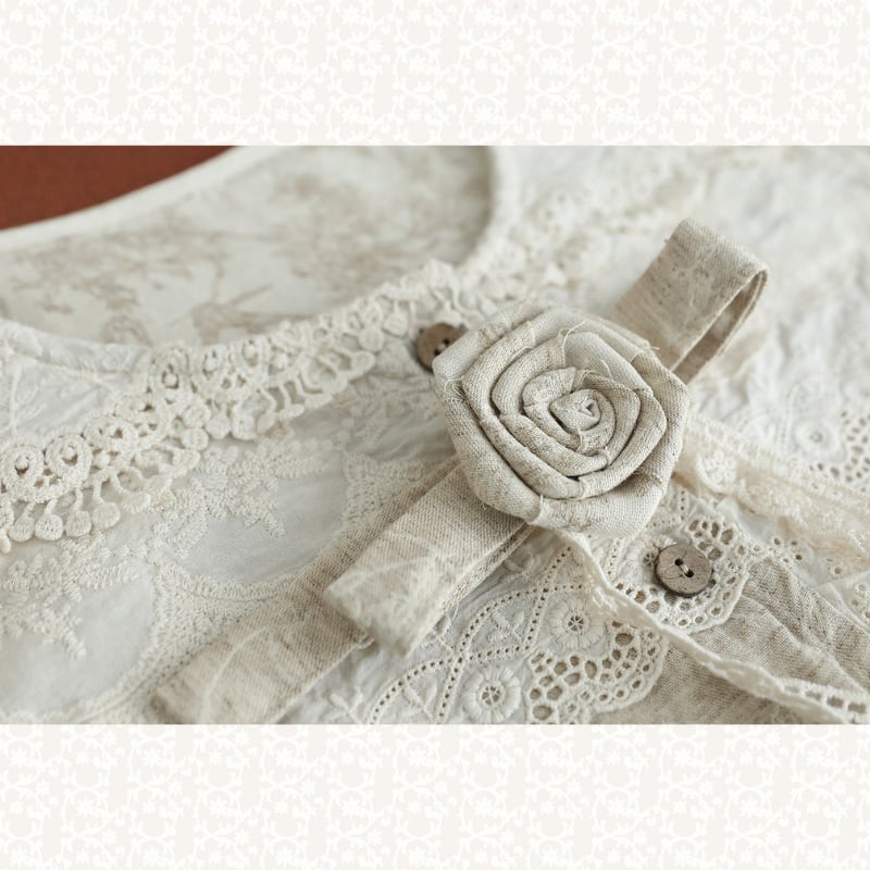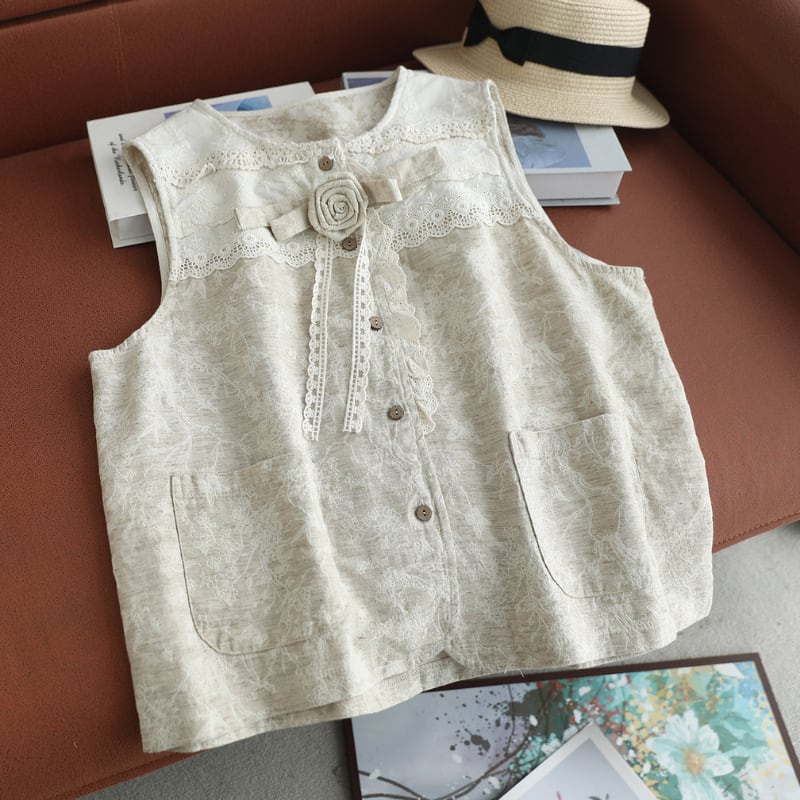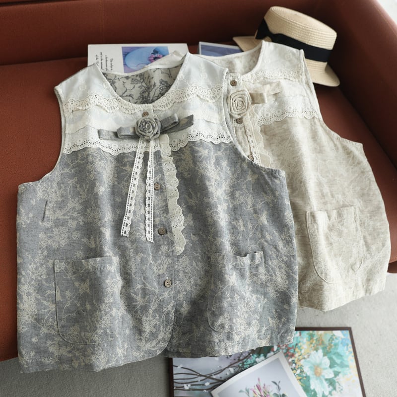 レース切替と小花柄が印象的なナチュラルベストです。