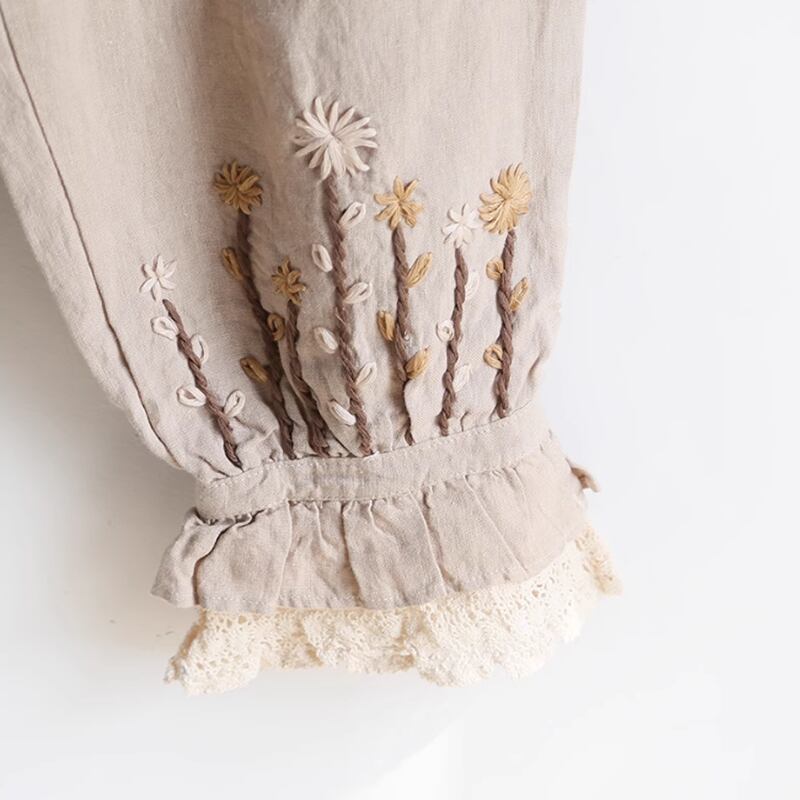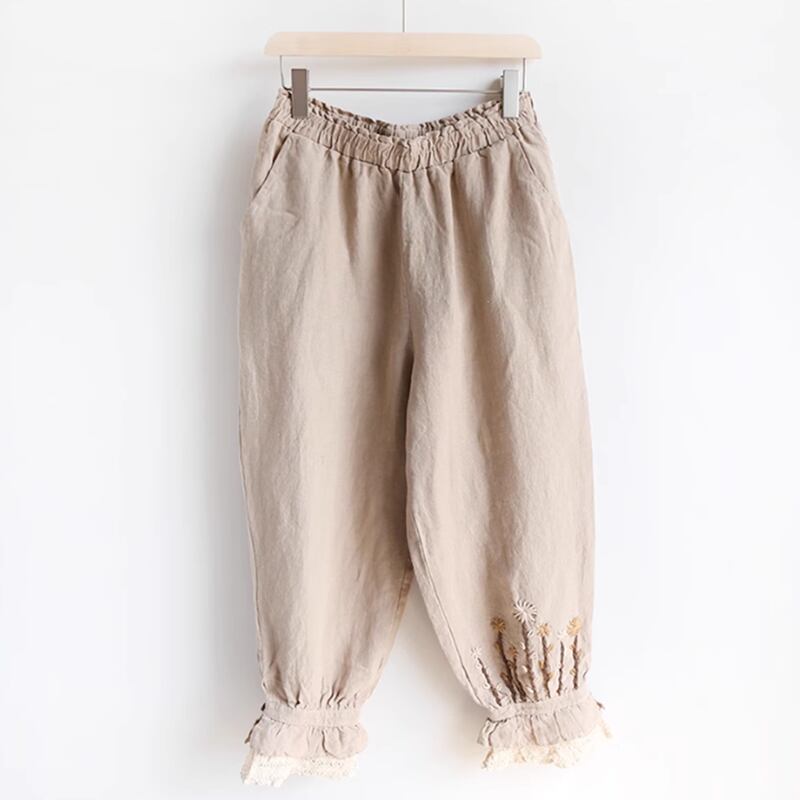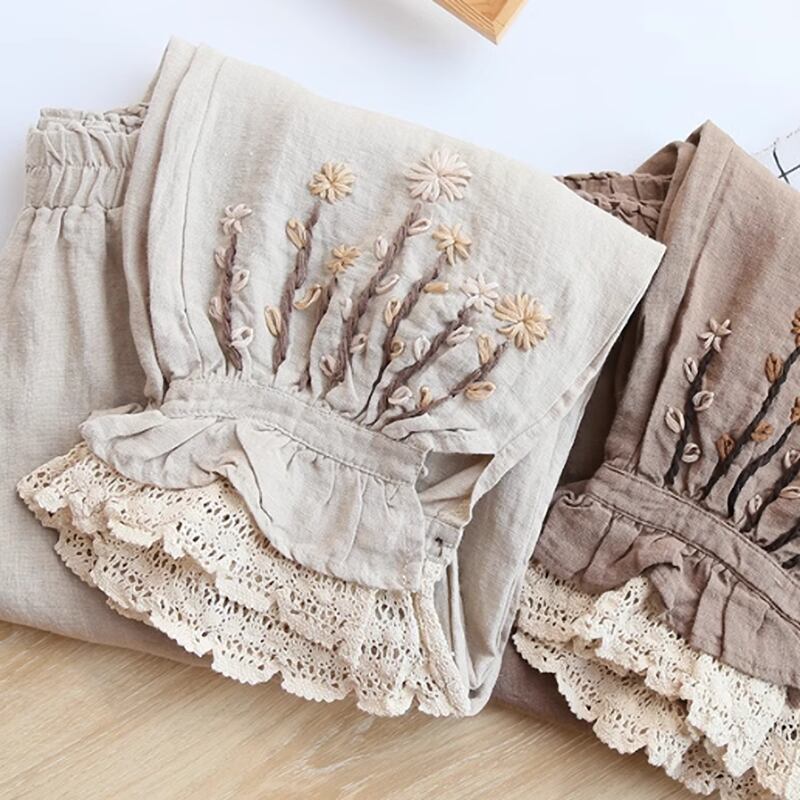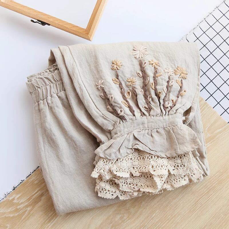 花刺繍とレースのゆったりパンツ W0110