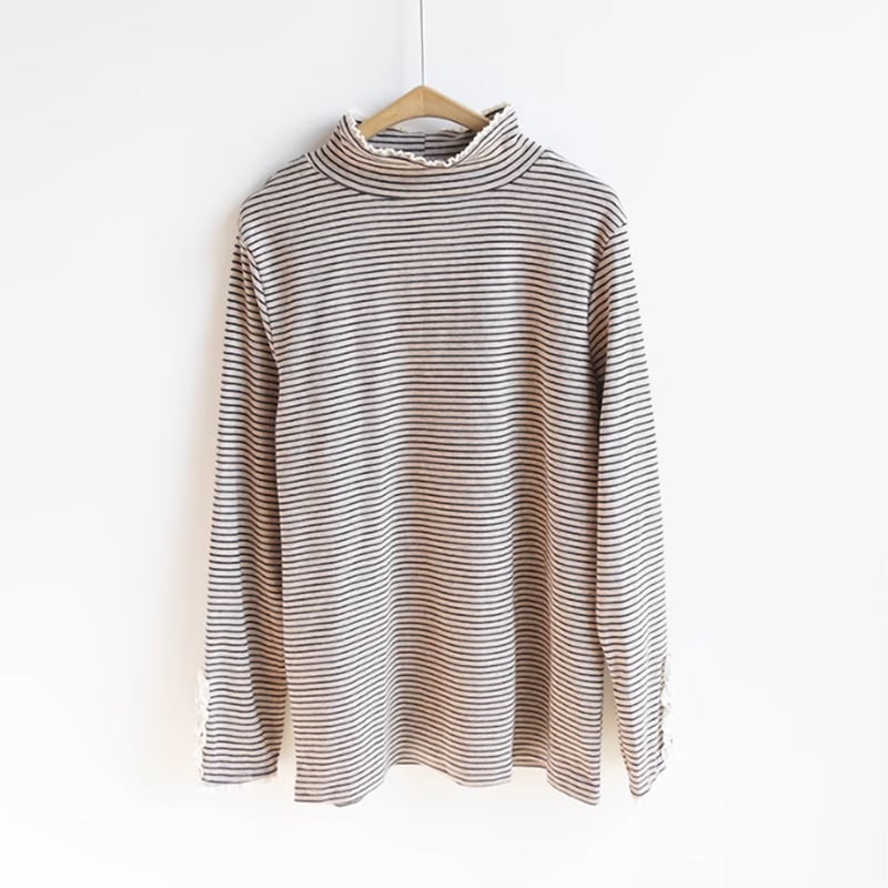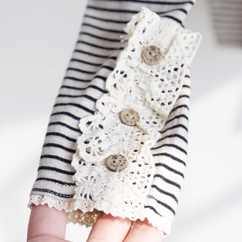 袖口ボタンパッチレースシャツ W0060