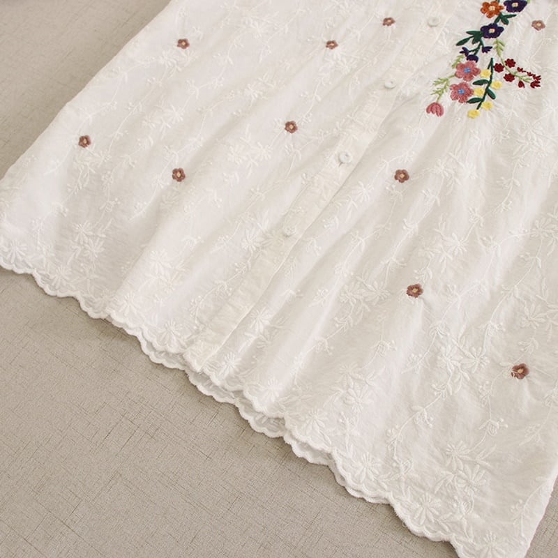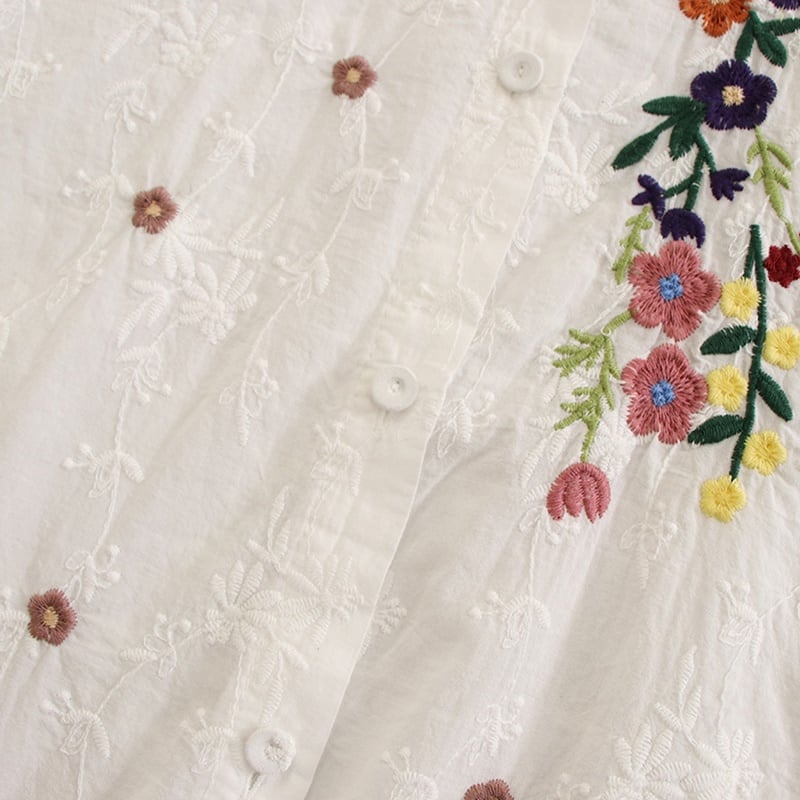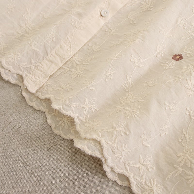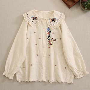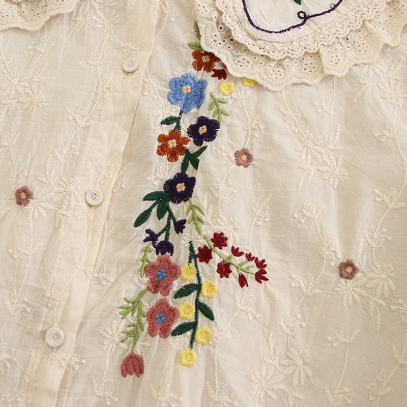 大きな襟のフラワー刺繍ドールシャツ W0362