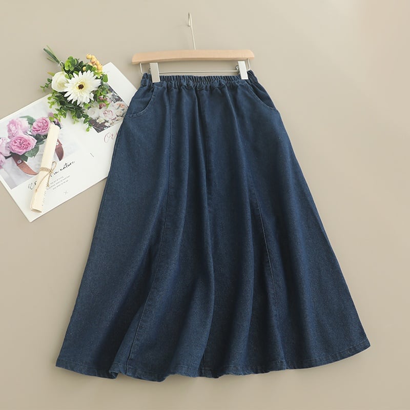 シンプルデニムAラインスカート W0467