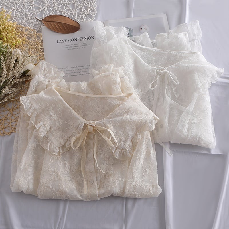 ドールレースカラ―花刺繍シアー ブラウス W0654