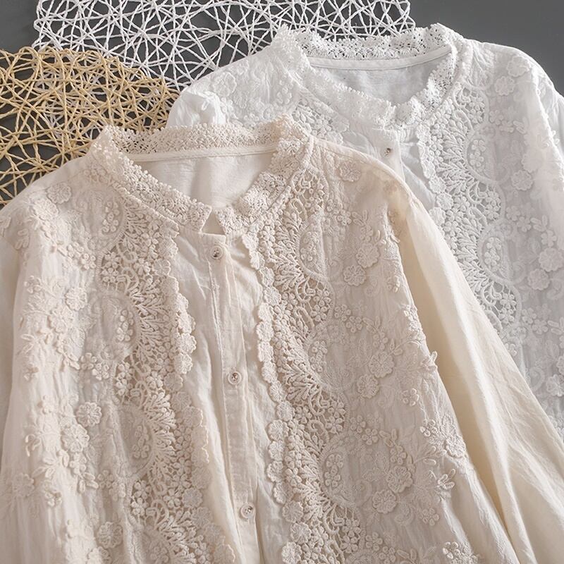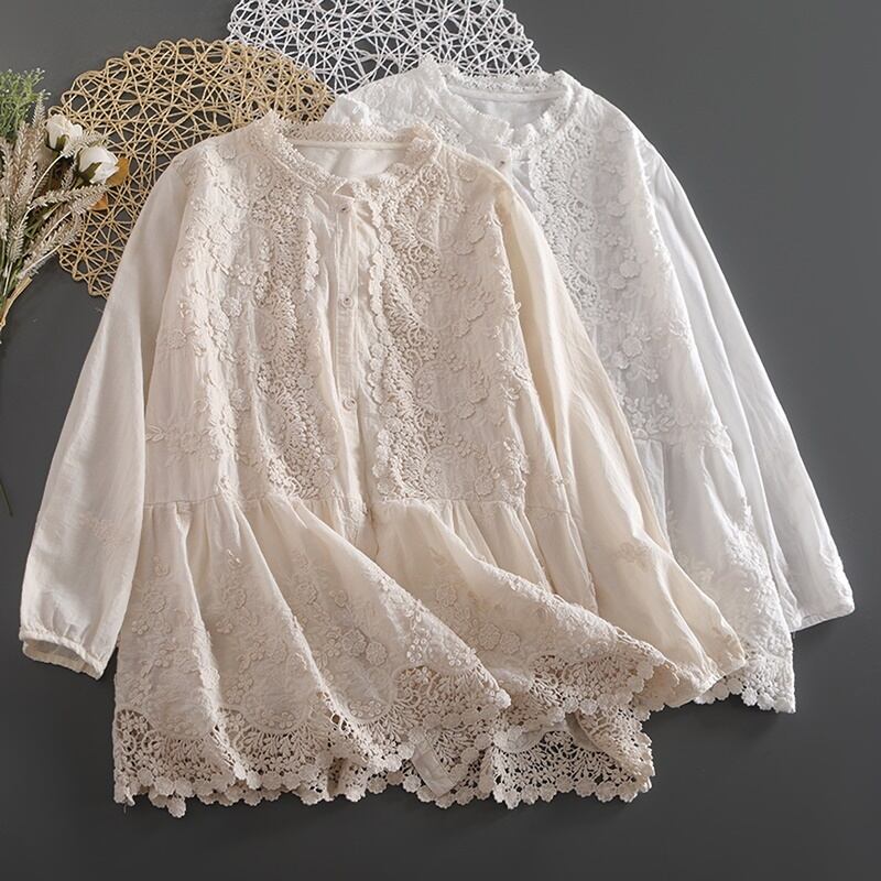 立体総フラワー刺繍レースブラウス W0671