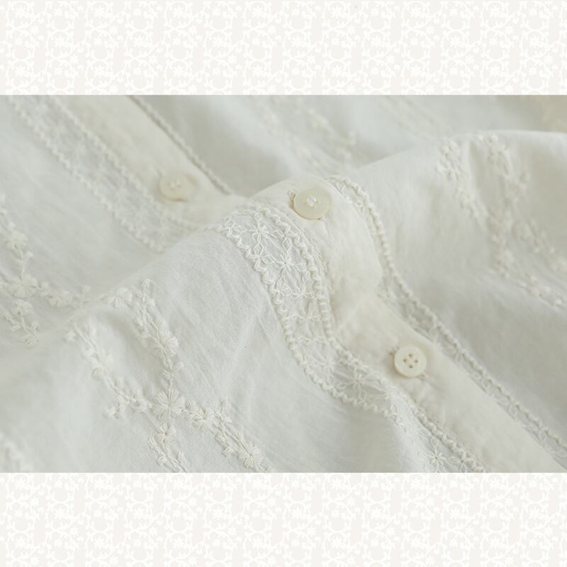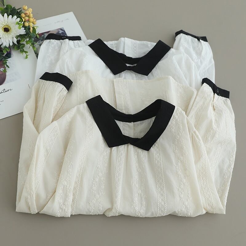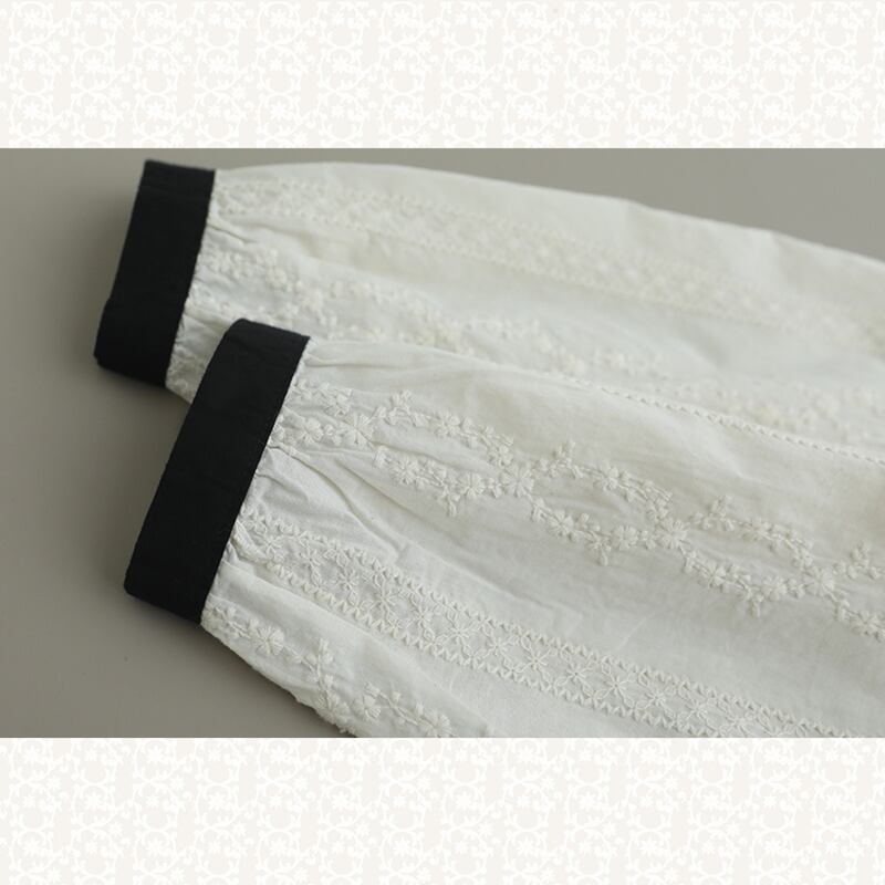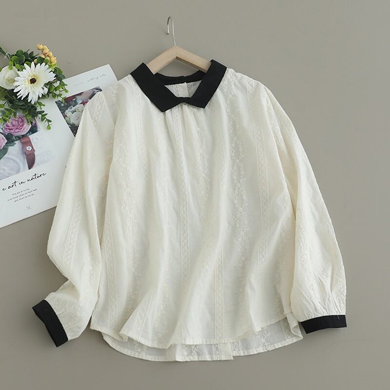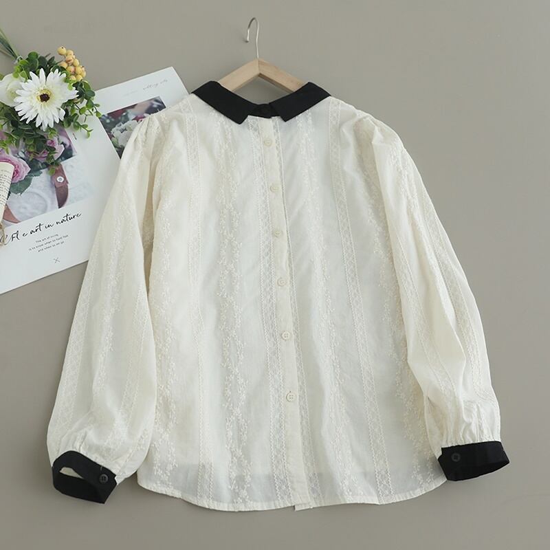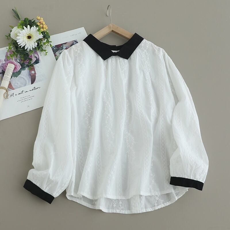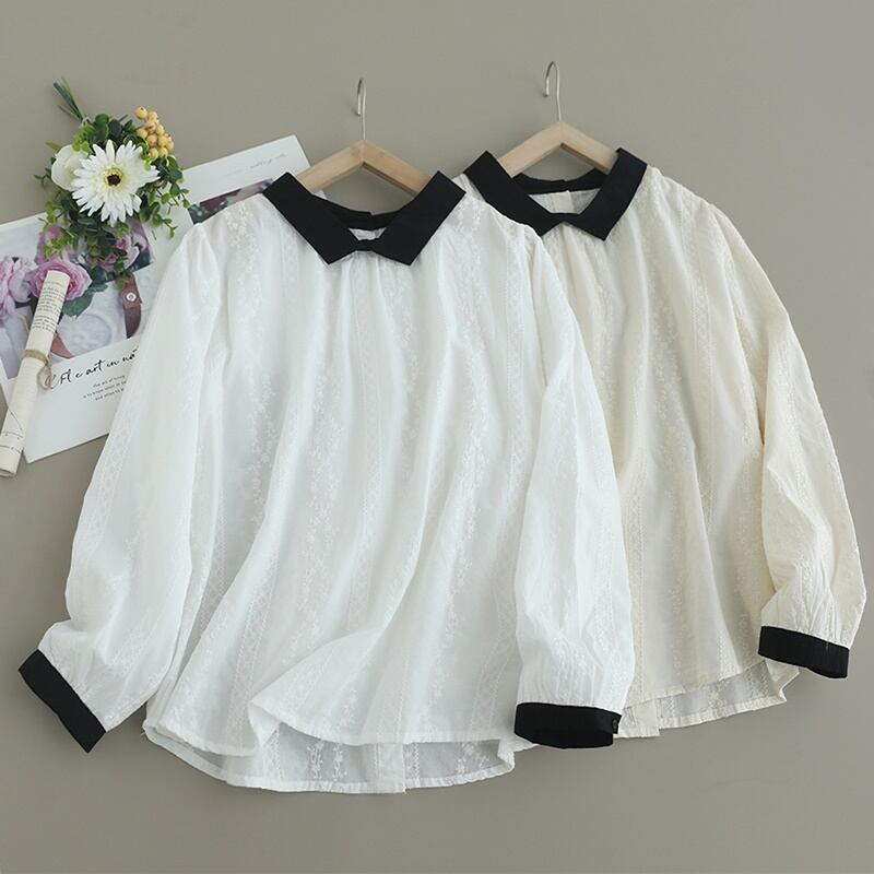 コントラストカラー刺繍バックボタンシャツ W0719