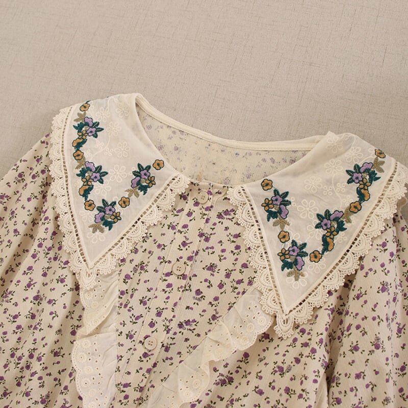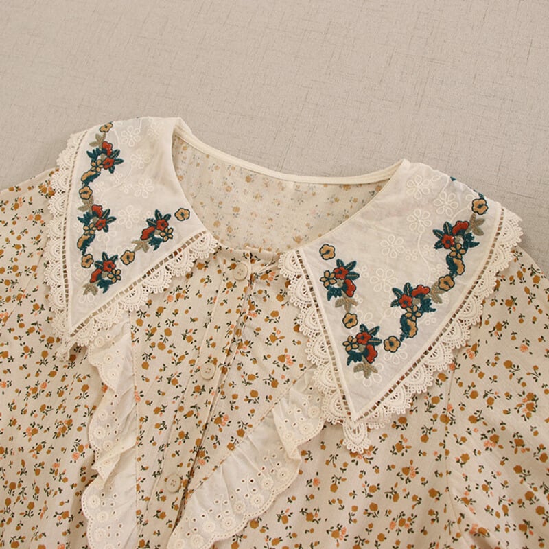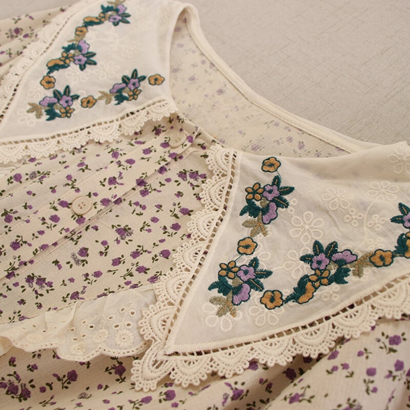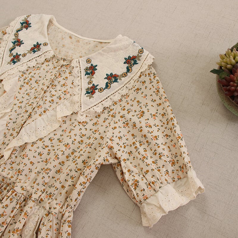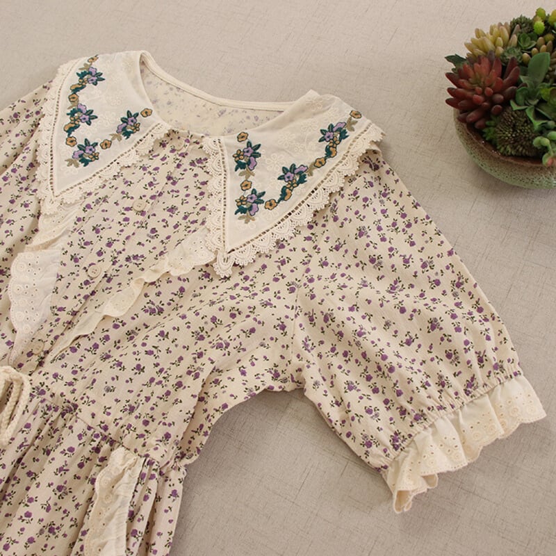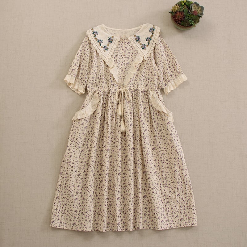 カラー花柄ポイントデザイン刺繍ドローストリングワンピース W0722