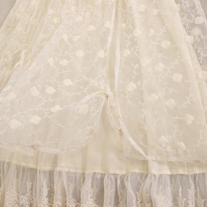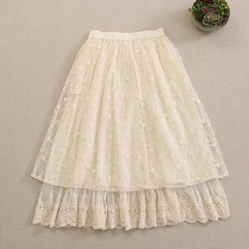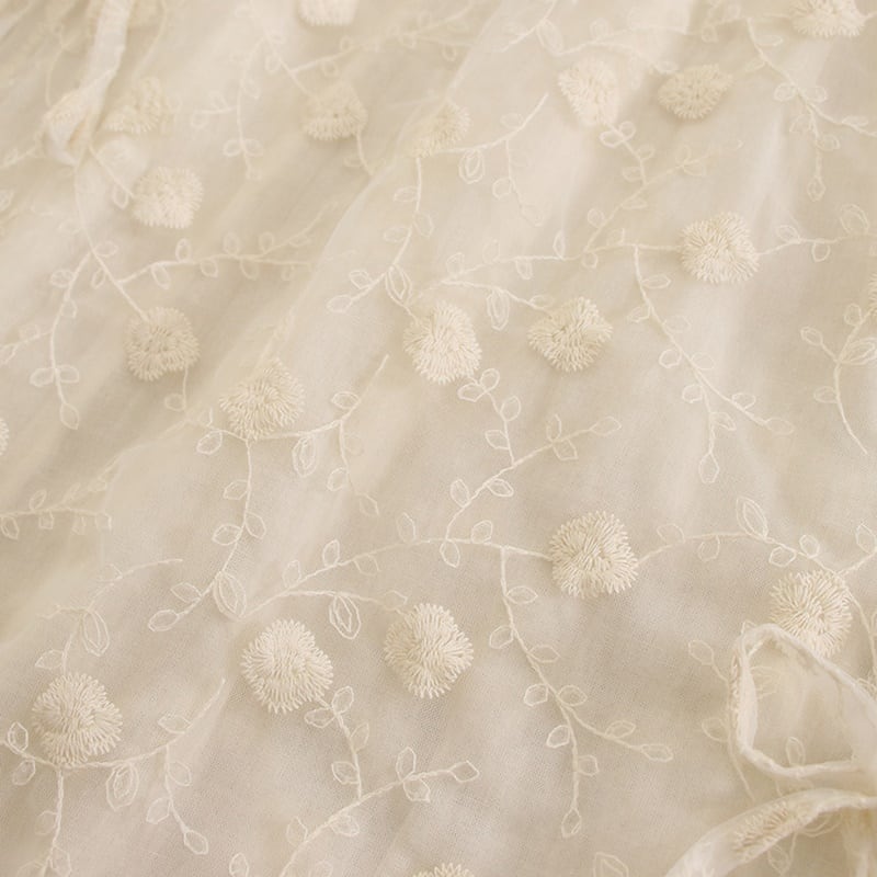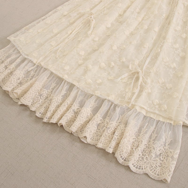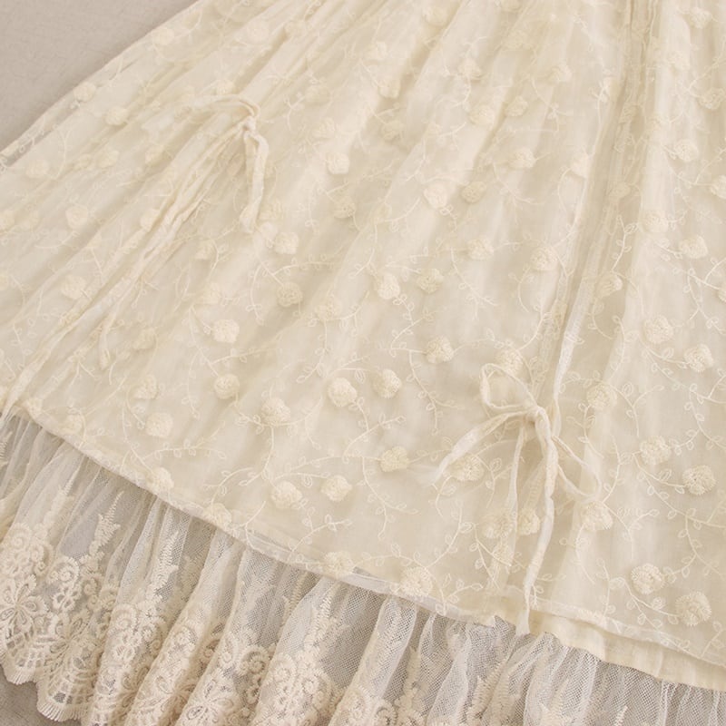リボン花柄刺繍レースシアースカート W0728