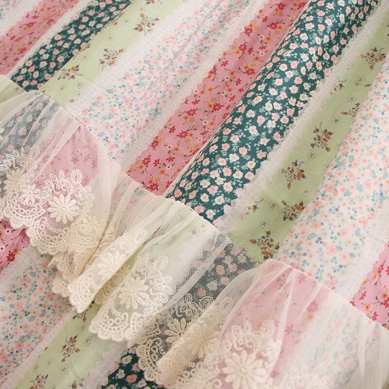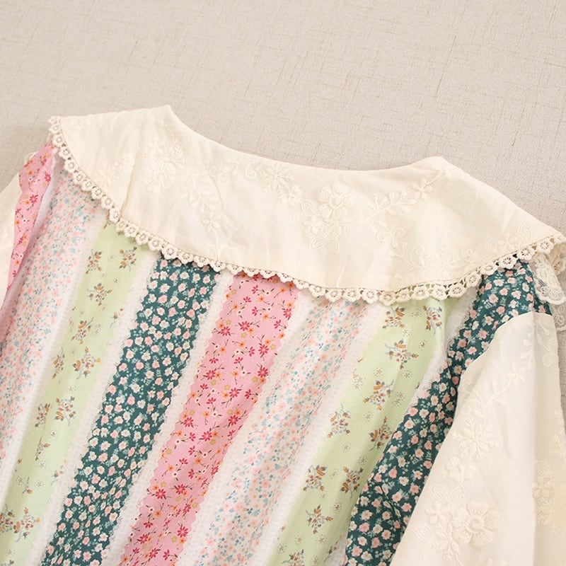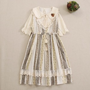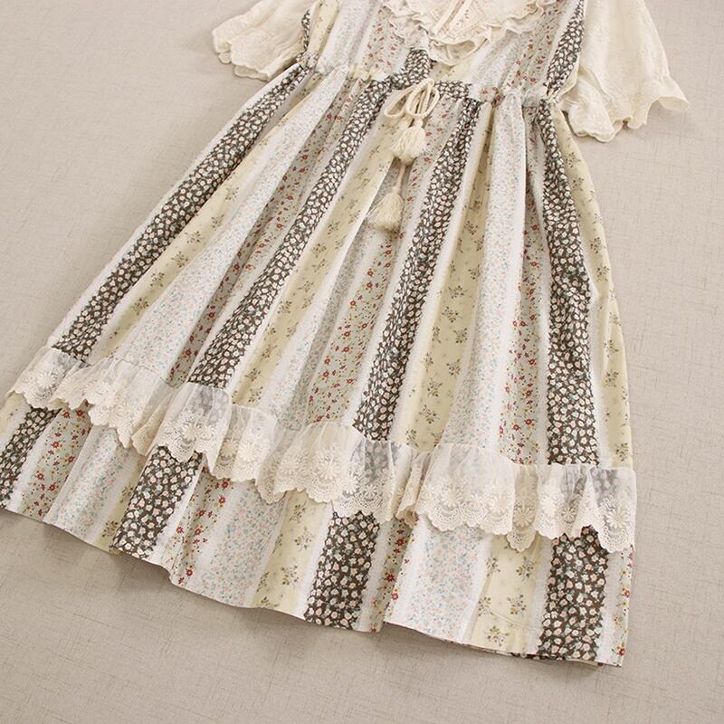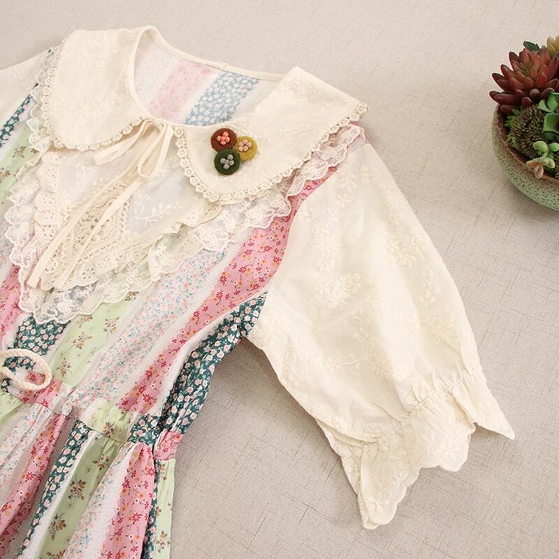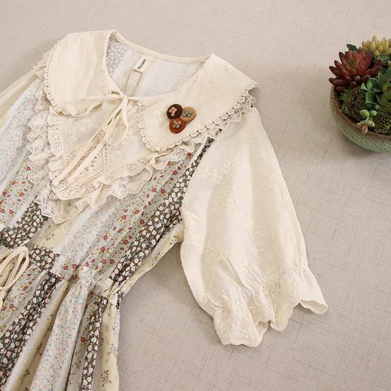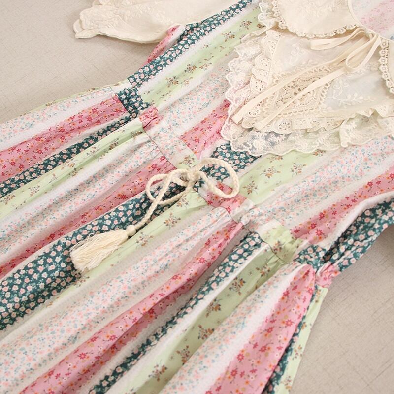 花柄パッチワークレースドローストリングワンピース W0757