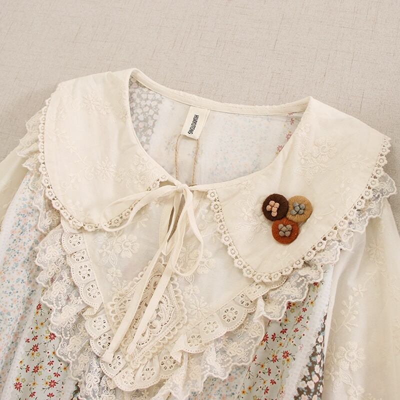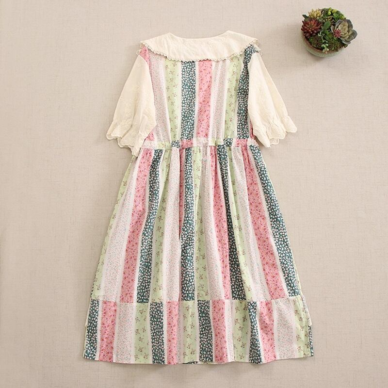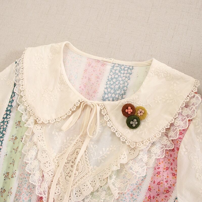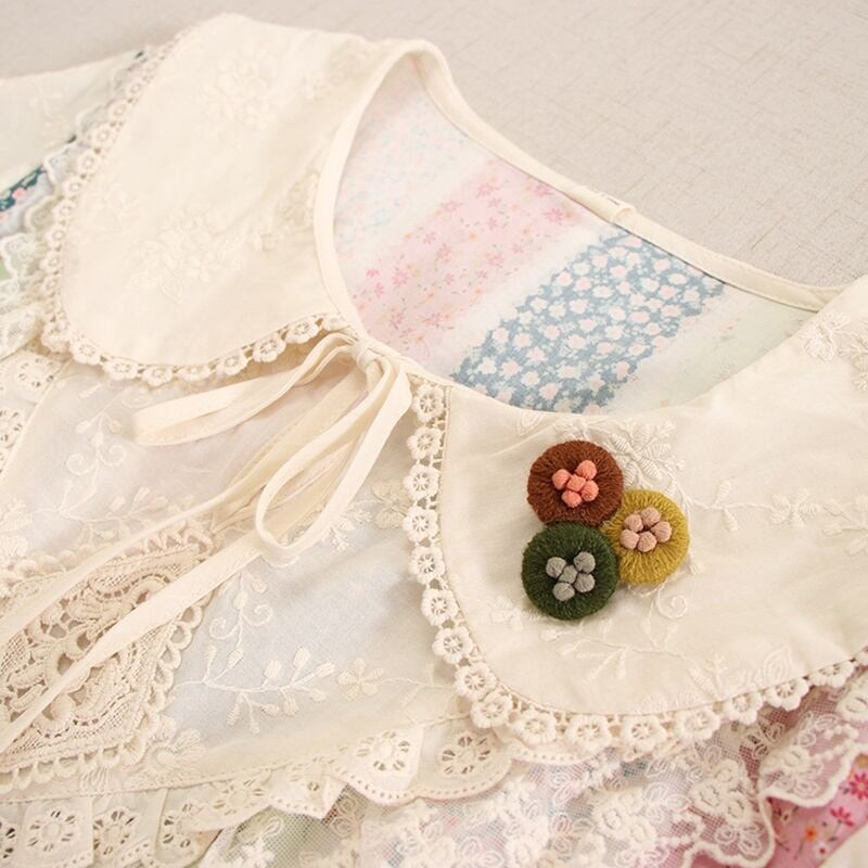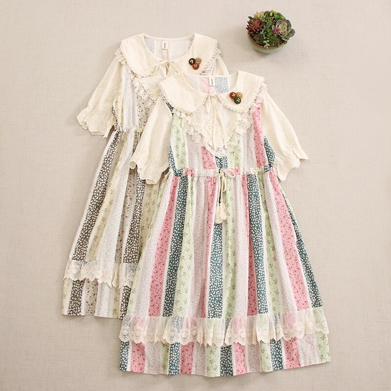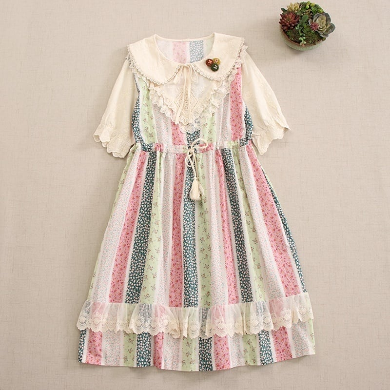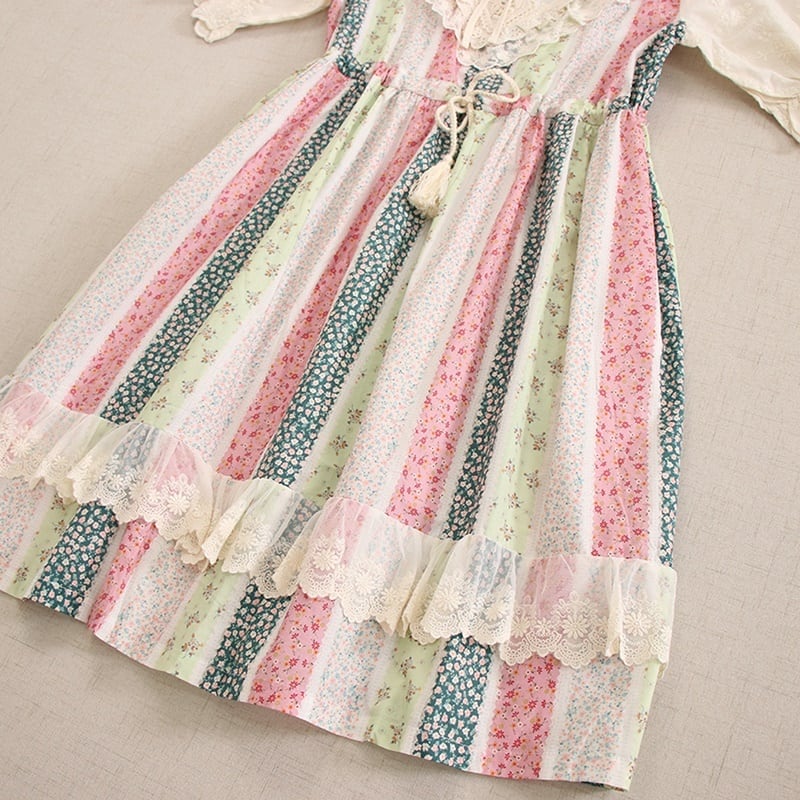 花柄パッチワークレースドローストリングワンピース W0757