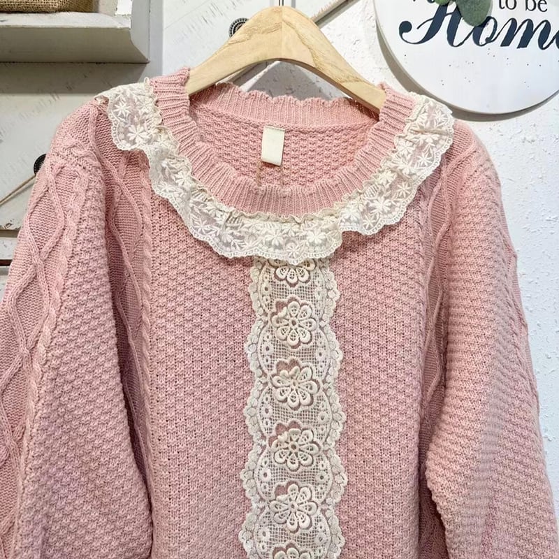 レースステッチプルオーバーセーター W0956