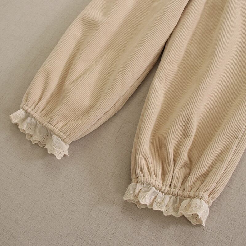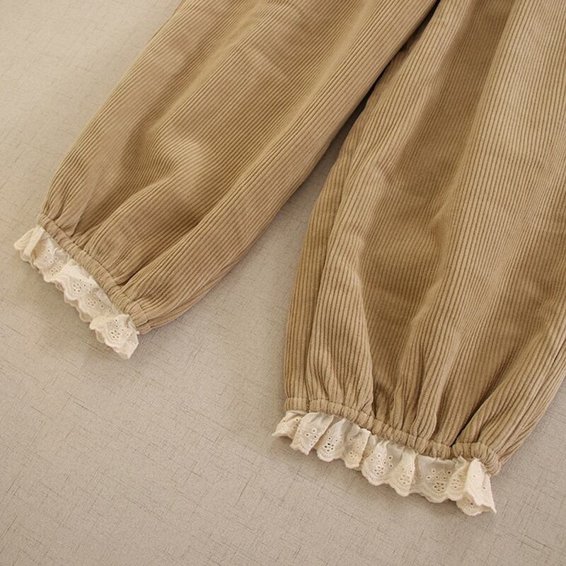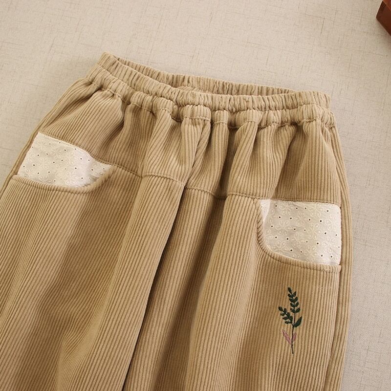 ポイント刺繍裏起毛コーデュロイつぼみパンツ W1014