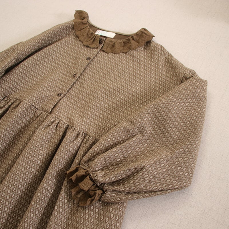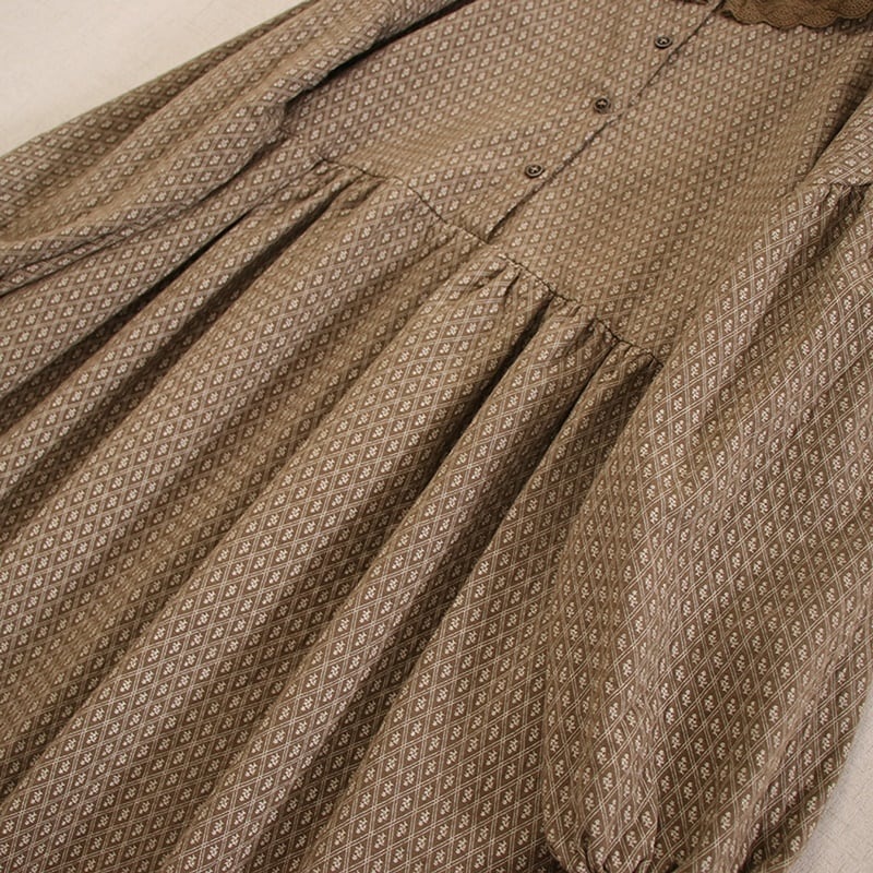ダイヤデザインプリントハーフボタンワンピース W1022