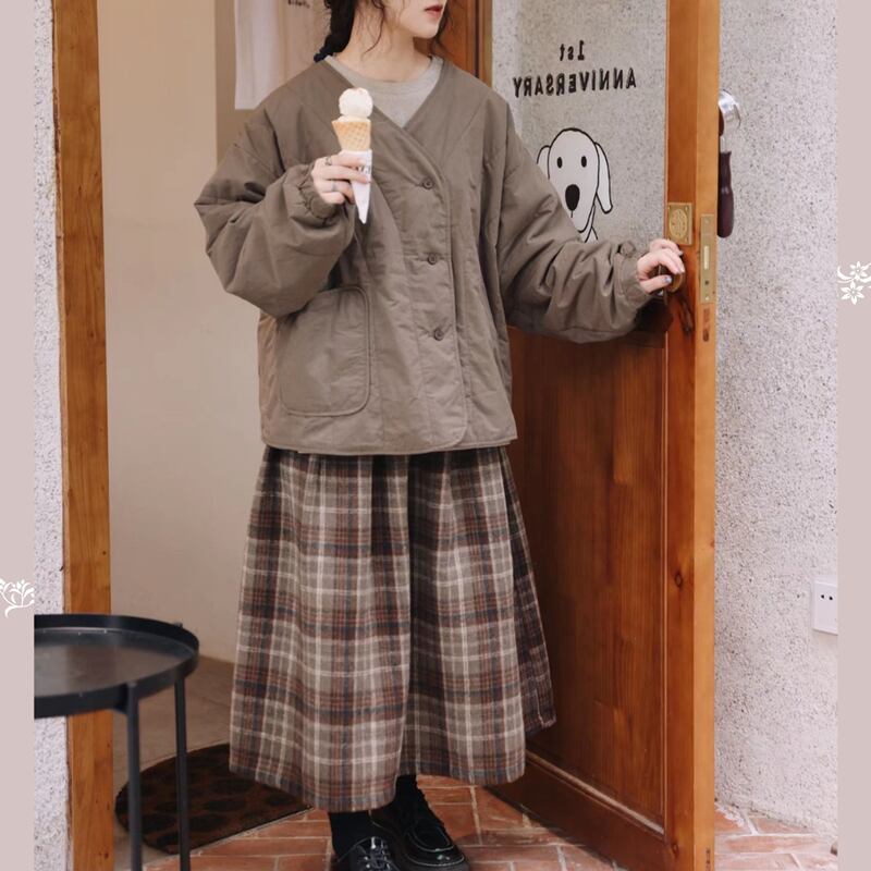 レトロチェック柄ウールスカート W1041