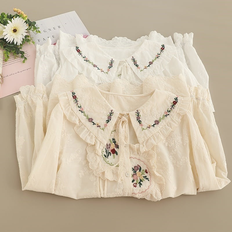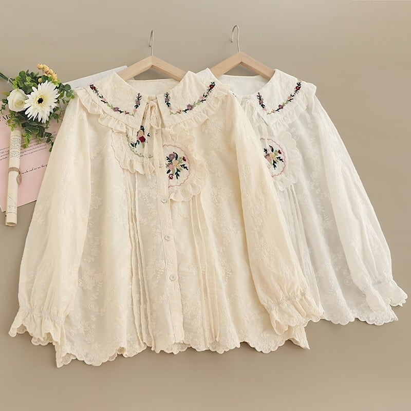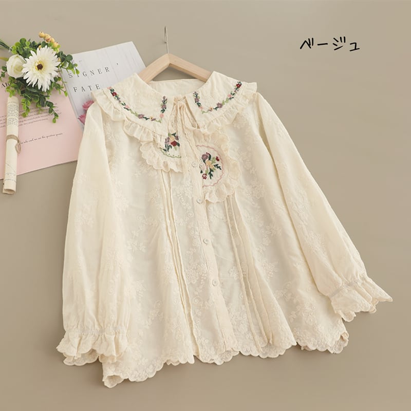 刺繍レースカラープリーツラインブラウス W1090