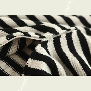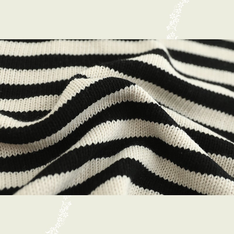 フード付きボーダーニットジッパーカーディガン W1096