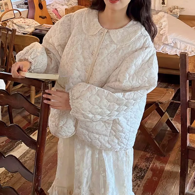キルティングフロントボタン花柄ジャケット W1121