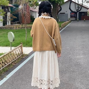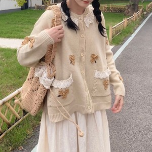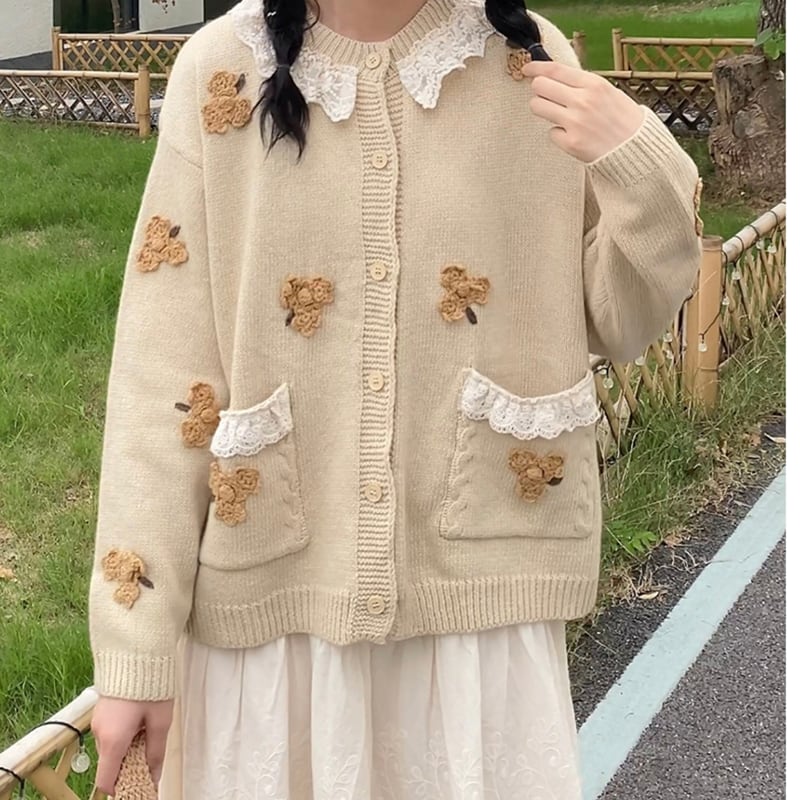 小花モチーフが可愛らしいニットカーディガンです。