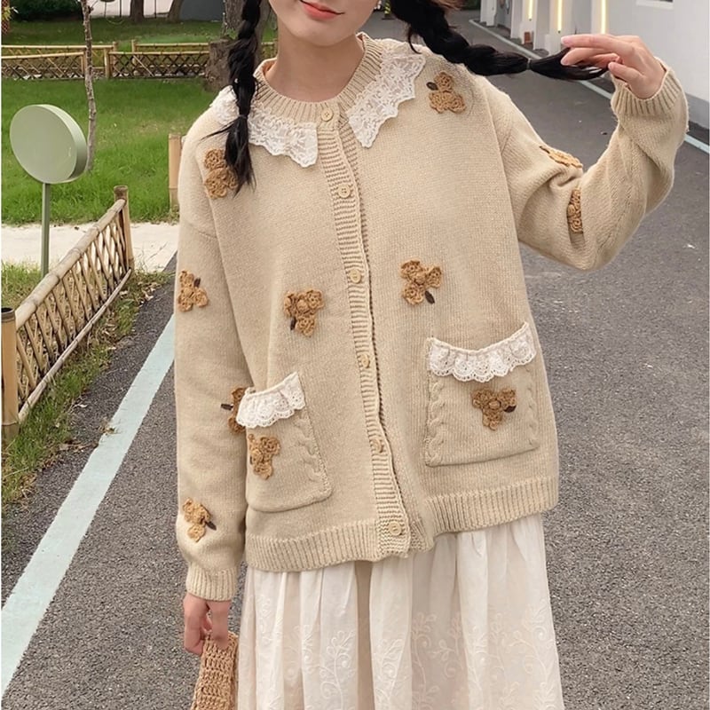 フラワーモチーフニットカーディガン W1159